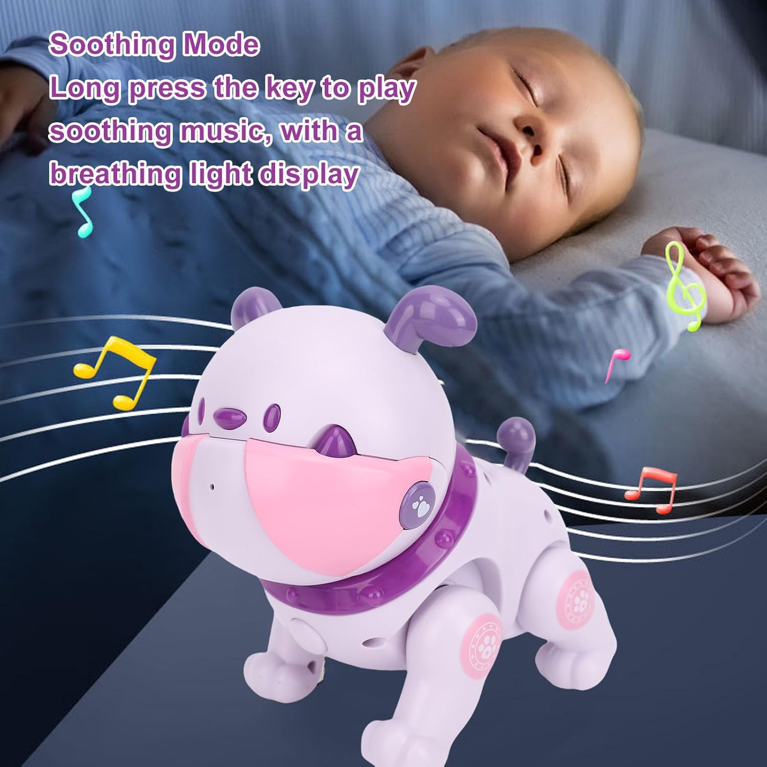 Musica e luce: attiva in remoto musica rilassante e illuminazione delicata per garantire un ambiente di sonno confortevole. La luce respiratoria cambia automaticamente e toccando il cane emette musica soft SUONO CAMBIAMENTO: questo giocattolo per cani robot elettrico supporta il rilevamento del touch per produrre tre diversi cambiamenti sonori, rendendolo un giocattolo interattivo di educazione precoce divertente e pratica Funzioni multiple: supporta il movimento e la rotazione e può essere controllato a distanza per andare avanti, indietro, pausa, standby e sonno, migliorando l'interattività con il cane robot Remoto Control: fare doppio cl ic sulla chiave centrale sul telecomando per immettere la modalità di cambiamento della luce e musica, che migliora le capacità di apprendimento, scintilla la creatività e l'immaginazione del bambino Education Toy: Alimentato dalla batteria (non incluso), questo cane robotico elettrico offre un uso duraturo, adatto a neonati e bambini piccoli, rendendolo pratico per l'intrattenimento quotidiano e l'educazione precoce