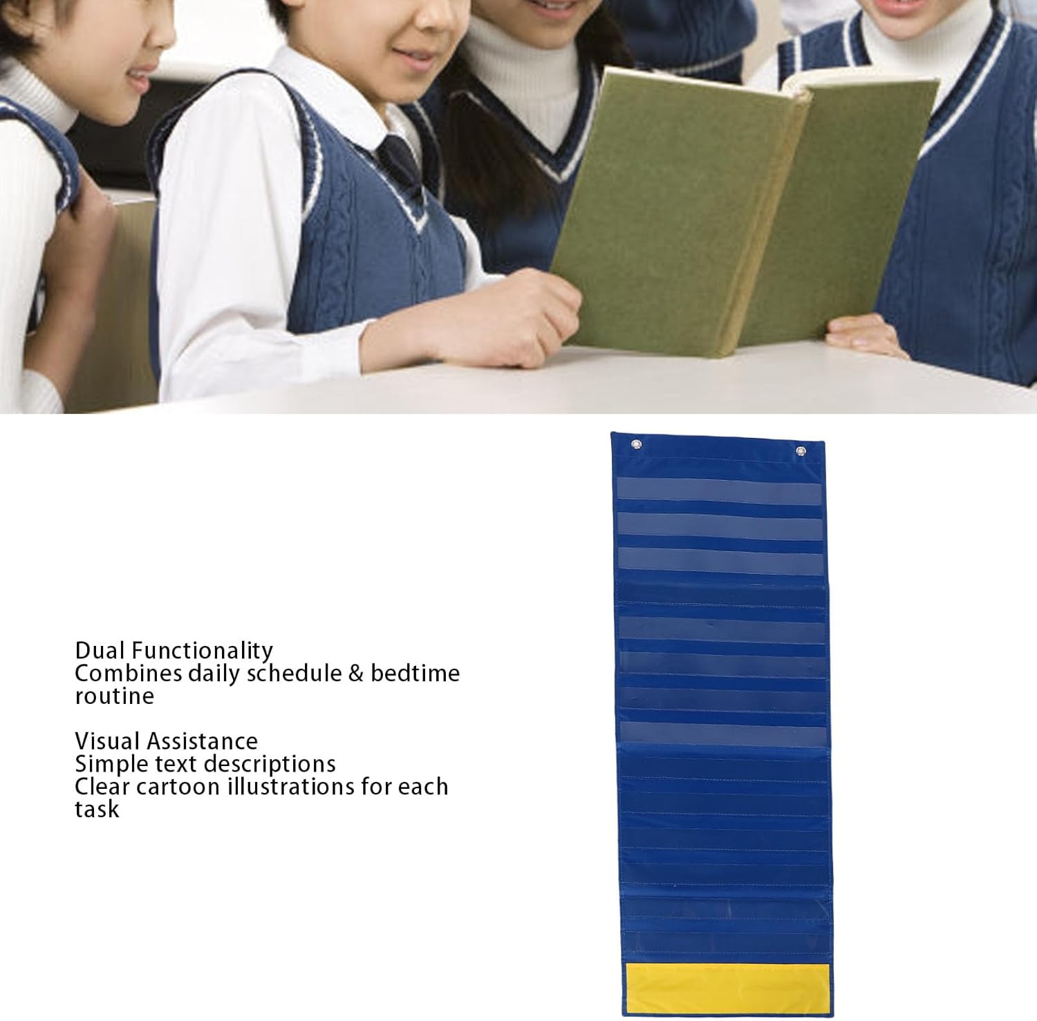 Migliora l'efficienza: questo calendario di 2 su 1 programma visivo combina la pianificazione di routine quotidiane con grafici di routine della buonanotte, aiutando i bambini a stabilire un ritmo strutturato e soddisfare le esigenze dei bambini che richiedono apprendimento organizzato. Visualizzazioni chiare: ogni attività presenta illustrazioni di cartoni animati brillanti e semplici descrizioni di testo, aumentando le capacità di riconoscimento visivo dei bambini e rendendo le istruzioni quotidiane più facili da seguire e accettare. Aggiornamenti quotidiani flessibili: genitori o insegnanti possono facilmente regolare il grafico di routine quotidiano ogni giorno per abbinare situazioni di vita reale, consentendo un uso ripetuto conveniente e consapevole dell'ambiente. Ridurre lo stress: i diagrammi di flusso visivo aiutano i bambini a anticipare le attività imminenti, migliorando il loro senso di sicurezza e minimizzando lo stress o le questioni comportamentali causate dall'incertezza. Versatile per la scuola domestica: ideale per famiglie, scuole materne, aule di educazione speciale e centri di riabilitazione, questa carta di routine della buonanotte è strumento ideale per migliorare le capacità di te stesso dei bambini e la gestione comportamentale.