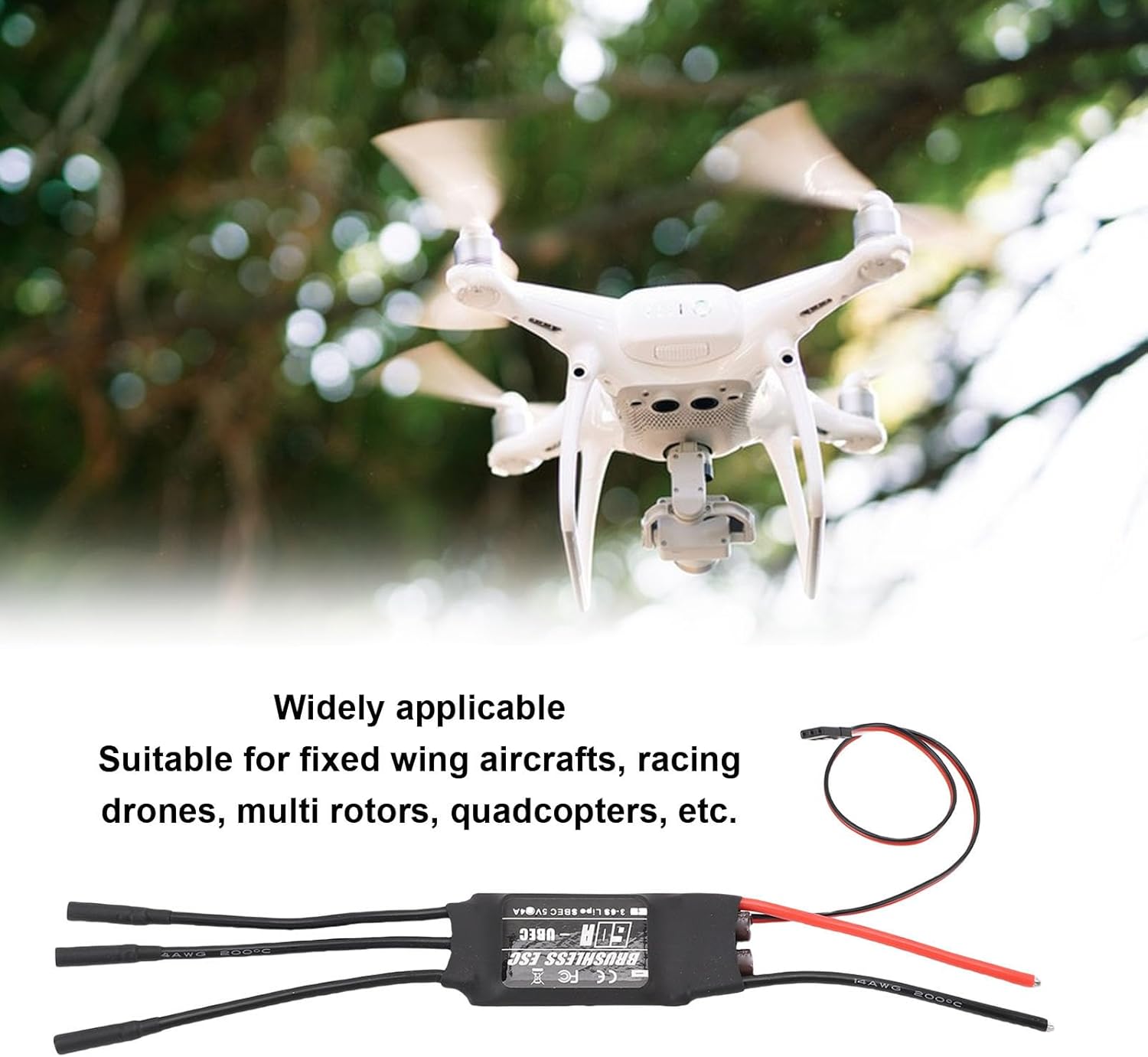 Ampia compatibilità: adatto per batterie LiPo da 3 a 6S, il motore RC Brushless ESC alimenta sia il ricevitore che i servi sistemi per prestazioni ottimali. Protezione migliorata: dotato di tensione di ingresso anormale, protezione termica ESC e funzionalità di taglio a bassa tensione, garantendo una durata e affidabilità estesi di ESC. Materiali in rame in silicone: realizzato in silicone premium e rame, questo ESP senza spazzole è realizzato con precisione per la sicurezza e una lunga durata, prevenendo danni nel tempo. Facile Processo di installazione: progettato con connettore femmina banana a motore da 4,0 mm, consentendo una semplice installazione e una comoda sostituzione di controller di velocità elettrica RC vecchi o danneggiati. Applicazione versatile: ideale per installazioni fai -da -te in aeromobili modello RC come aerei ad ala fissa, droni da corsa, multi rotori e quadricotteri, offrendo un'ampia adattabilità.