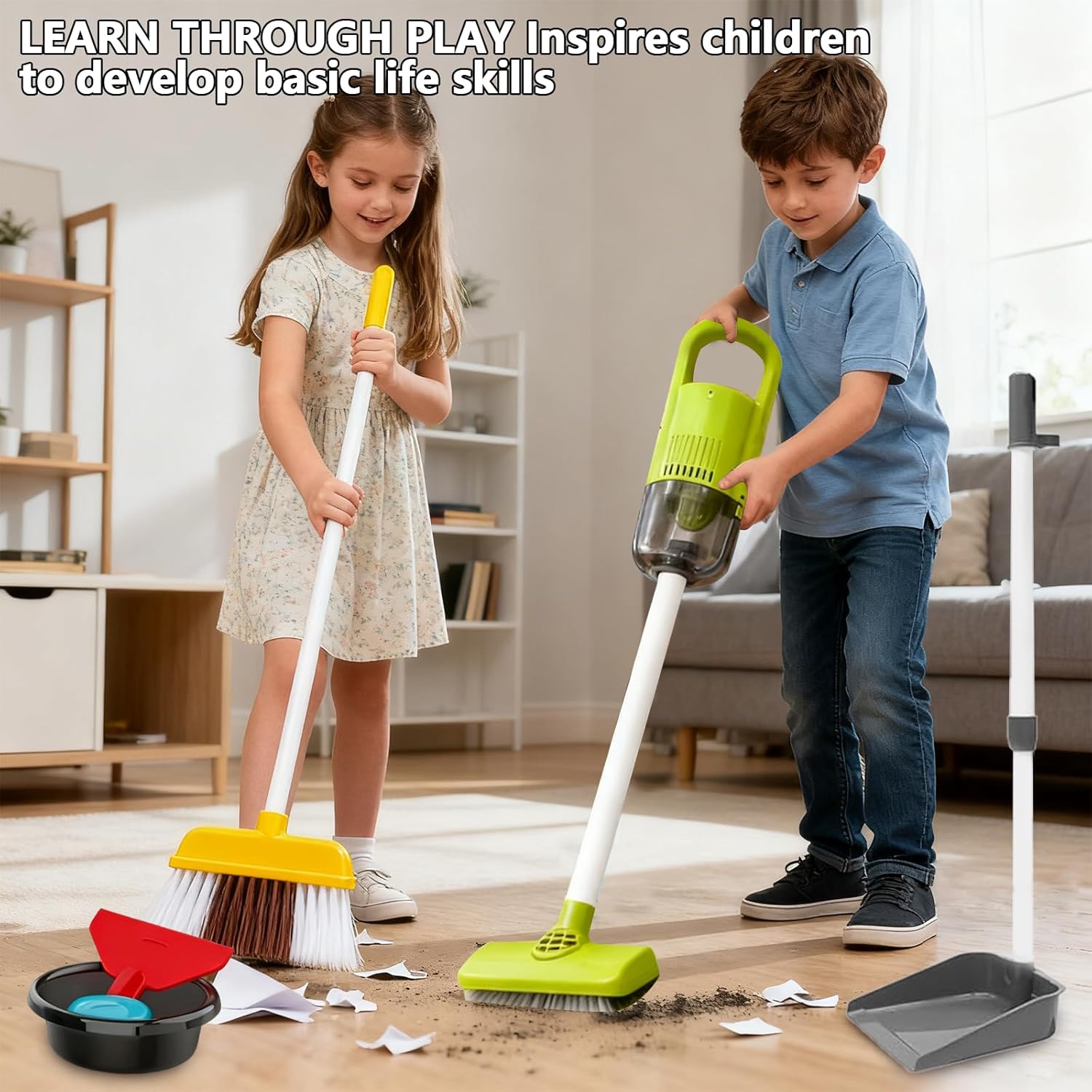 Esperienza di gioco di ruolo realistica: questo set di pulizia da 22 pezzi include un aspirapolvere con effetti sonori ed effetti di aspirazione realistici, che stimola l'immaginazione dei bambini e consente loro di immergersi completamente nel gioco di ruolo! I bambini adorano imitare gli adulti e sviluppare il loro senso di responsabilità e creatività attraverso simulazioni realistiche dei lavori domestici. 【Kit di pulizia interattivo】 Questo kit di pulizia per bambini contiene tutti gli accessori necessari: aspirapolvere (batterie AA non incluse), scopa, pala, scopa, spruzzatore, spazzola, secchio, rack di stoccaggio, ecc. Progettato per una sicurezza ottimale e ore di gioco dinamiche, da soli o in coppia. 【Sviluppa abilità】 L'aspirapolvere giocattolo per bambini sviluppa la coordinazione occhio-mano, lo spirito di squadra e la logica attraverso giochi basati su scenari. È ideale per instillare buone abitudini di pulizia nei bambini piccoli, incoraggiandone l'indipendenza e l'impegno familiare. 【Materiale sicuro per i bambini】 Questo giocattolo per bambini è realizzato in ABS resistente e non tossico, con bordi lisci, colori brillanti e componenti privi di BPA che garantiscono una sicurezza ottimale durante il gioco. Regalo ideale per un piccolo aiutante: questo insolito regalo per giochi di ruolo delizierà i bambini dai 3 ai 6 anni! Sia educativo che divertente, incoraggia buone abitudini igieniche ed è la scelta perfetta per compleanni, Natale e altre occasioni speciali.