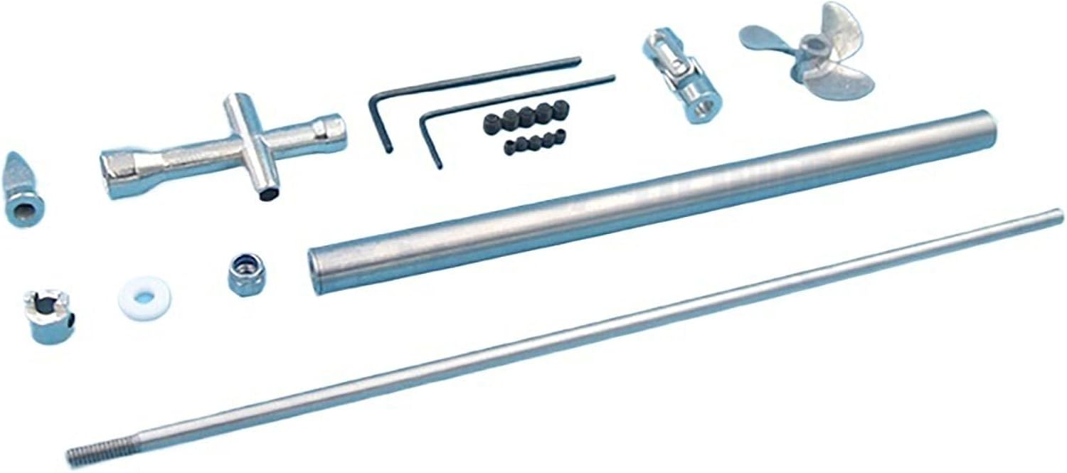 Gruppo albero completo for barca RC con pagaia a 3 pale in lega Albero e manicotto in acciaio inossidabile 304, resistenti alla ruggine e durevoli Disponibili diverse lunghezze di albero/manicotto e dimensioni di giunti universali Include cuscinetti ad alta velocità preinstallati e hardware di montaggio Ideale for barche esche, barche a rete, modelli in legno e imbarcazioni RC in scala