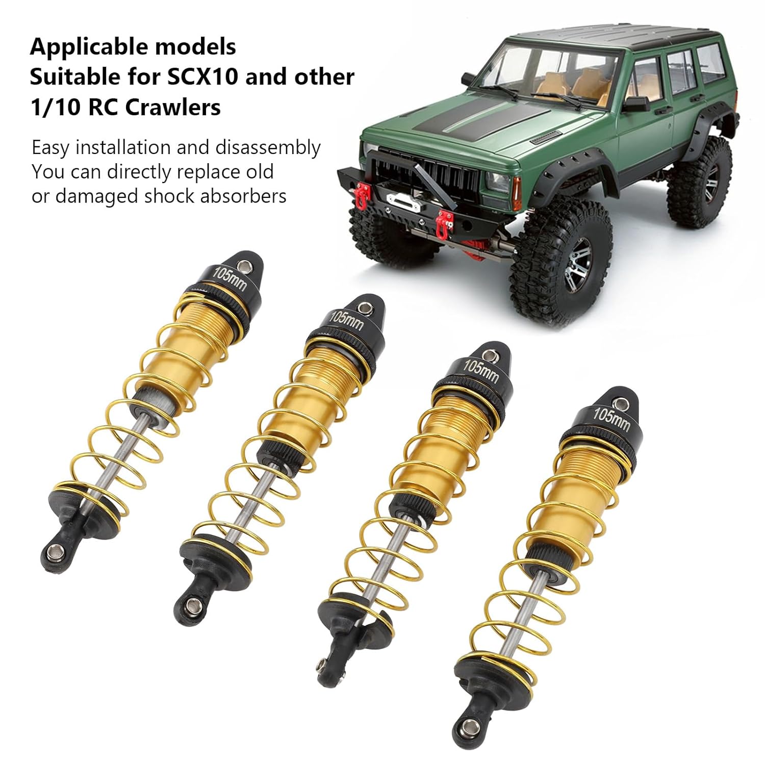 [Compatibilità perfetta] Questi ammortizzatori RC premium sono appositamente progettati per SCX10 e compatibili con la maggior parte delle auto crawler RC in scala 1/10. Con una misurazione precisa della distanza di 105 mm, assicurano un montaggio per il veicolo. Il set include tutto ciò che è necessario per l'installazione che li rende sostituti o aggiornamenti ideali. [Costruzione premium] Realizzati in lega di alluminio di alta qualità Questi shock offrono una durata ezionale in condizioni di fuoristrada aspre. La robusta costruzione resiste a vibrazioni intense e impatti mantenendo prestazioni precise. I materiali superiori impediscono la corrosione e l'usura per un'affidabilità duratura. [Performance migliorate] sperimentano corse più fluide e un migliore controllo con questi ammortizzatori sintonizzati sulle prestazioni. Forniscono smorzamenti ottimali e tassi di molla per una migliore stabilità durante salite e discese. La tua auto RC gestirà il terreno accidentato con fiducia mantenendo una migliore trazione ed equilibrio. [Easy Installation] Aggiorna il tuo crawler RC in pochi minuti con questi semplici bulloni sugli shock. È incluso hardware di installazione completa, inclusi i dadi di viti e le teste a sfera. Nessun strumento o modifiche speciali richiedevano di renderli perfetti per principianti ed esperti. Trasforma le prestazioni del tuo veicolo senza sforzo. [Versatile capacità di terreno] Conquista qualsiasi paesaggio con questi ammortizzatori ad alte prestazioni che assorbono gli shock in modo efficace. Che si tratti di tracce rocciose sabbiose o percorsi fangosi, questi shock mantengono prestazioni coerenti. Migliorano drasticamente le abilità fuori strada della tua auto RC proteggendo altri componenti dai danni delle vibrazioni.