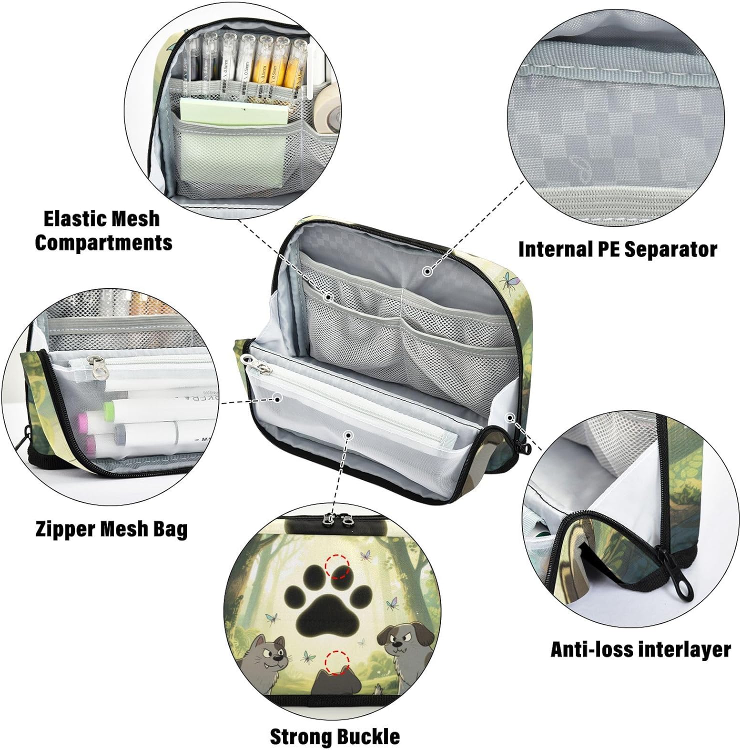 Design unico in piedi: l'astuccio si apre completamente e sta in piedi tramite bottoni magnetici. Visualizza facilmente i contenuti a colpo d'occhio sulla tua scrivania, risparmiando ricerche frenetiche durante sessioni di studio o attività di lavoro. Recupero degli articoli senza sforzo: astuccio organizer per matite con scomparti dedicati (rete principale, con cerniera, tasca aperta) significa non più frugare. Trova istantaneamente il tuo evidenziatore, unità USB o balsamo per le labbra, ovunque tu sia. Alta qualità: astuccio portapenne realizzato in tessuto di poliestere lavabile, cucito con cuciture solide, offre una grande protezione contro polvere e graffi per il contenuto all'interno. Inodore e facile da pulire. Multifunzione: non è un astuccio organizer per matite, ma può anche essere utilizzato per altri scopi. Come una penna, una matita o un astuccio per pennelli, una borsa per il trucco, un ufficio personale e una custodia per forniture Come regalo: gli astucci possono anche essere regalati come regalo per amici. I genitori potrebbero regalarlo ai bambini come regalo di compleanno o regalo di Natale. Gli insegnanti potrebbero regalarlo agli studenti come regalo di laurea o premio.