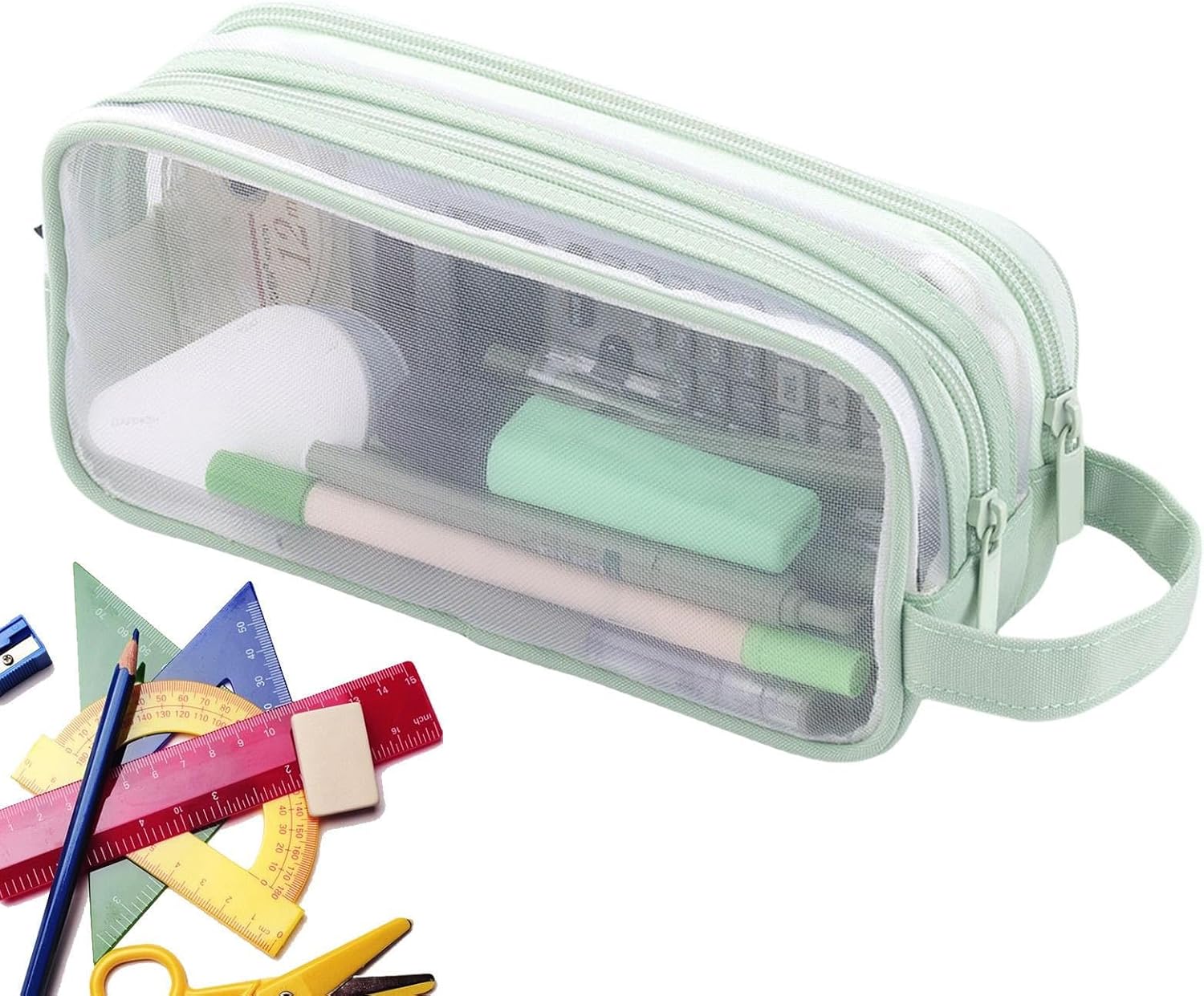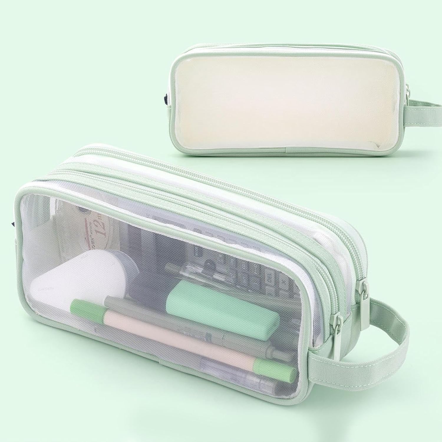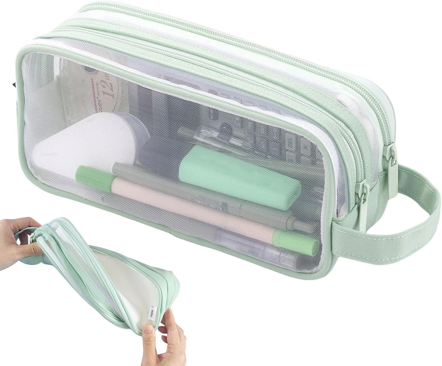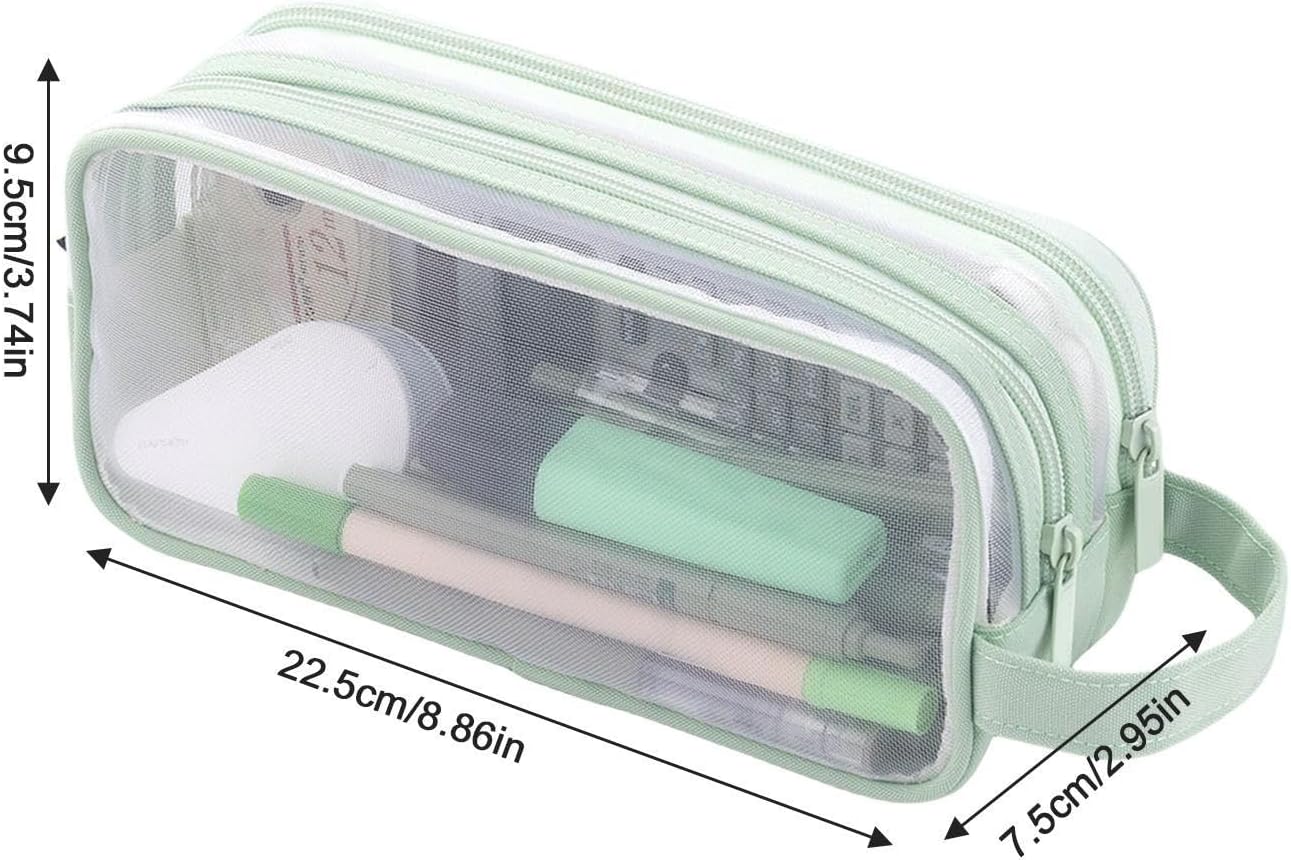 Accessibilità migliorata: con un design a rete trasparente, questo astuccio ti consente di individuare rapidamente i tuoi strumenti di scrittura, risparmiando tempo e aumentando la produttività. Grande spazio: il nostro astuccio in rete trasparente vanta ampie tasche laterali per piccoli oggetti e uno scomparto principale che può contenere 50-80 penne/matite. Misura 22,5 x 7,5 x 9,5 cm, offre ampio spazio per riporre articoli per la scuola o l'ufficio. Facile da trasportare: questo astuccio in rete trasparente ha un manico che può essere appeso allo zaino o alla scrivania, rendendo facile trasportare cancelleria e accessori. Ha anche due tiretti per cerniera per una chiusura liscia e materiale a rete che è comodo e durevole. Uso versatile: questo astuccio in rete trasparente può essere utilizzato come borsa da viaggio, borsa per accessori, borsa per cosmetici, astuccio per ragazze o borsa multifunzione. È comodo, resistente e facile da trasportare. Ottimo regalo: sorprendi i tuoi cari con questo astuccio a rete trasparente che è un ottimo regalo per le vacanze o il compleanno. È perfetto per studenti, scrittori, artisti, adolescenti e amici che amano organizzare i loro articoli di cancelleria.