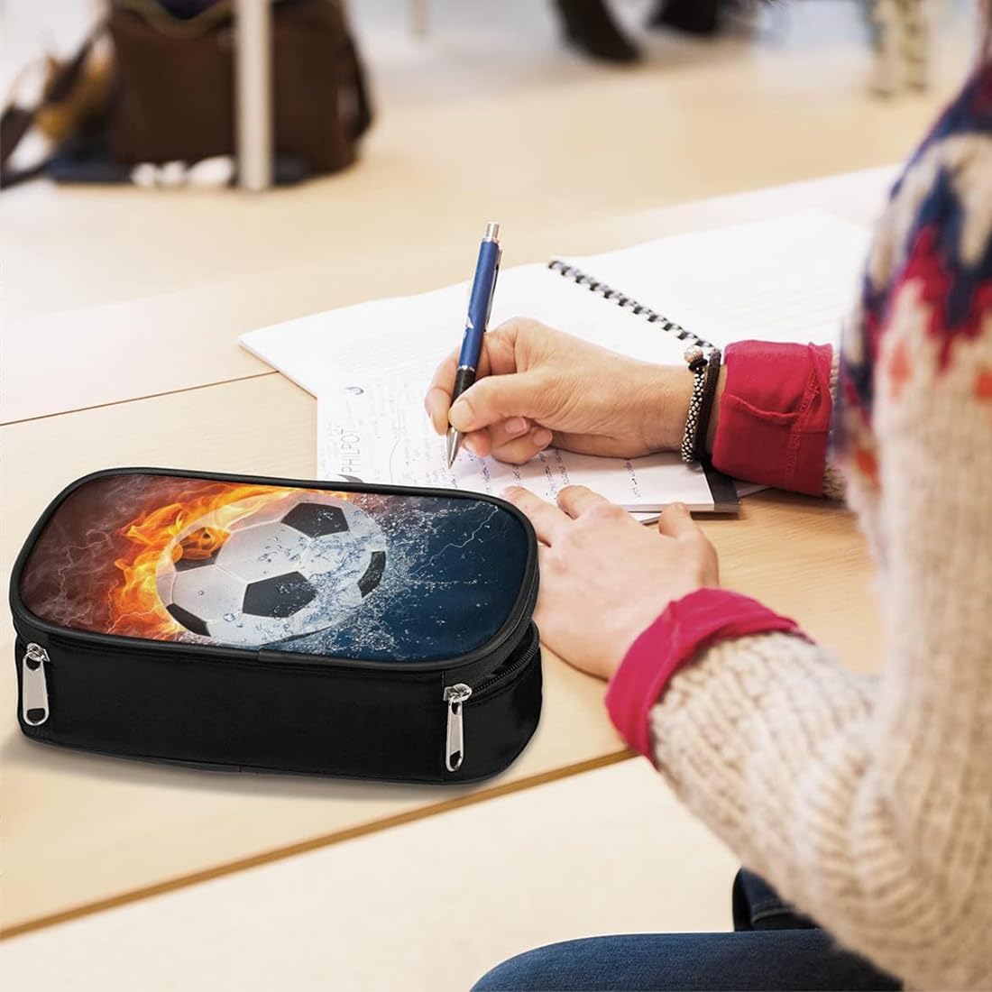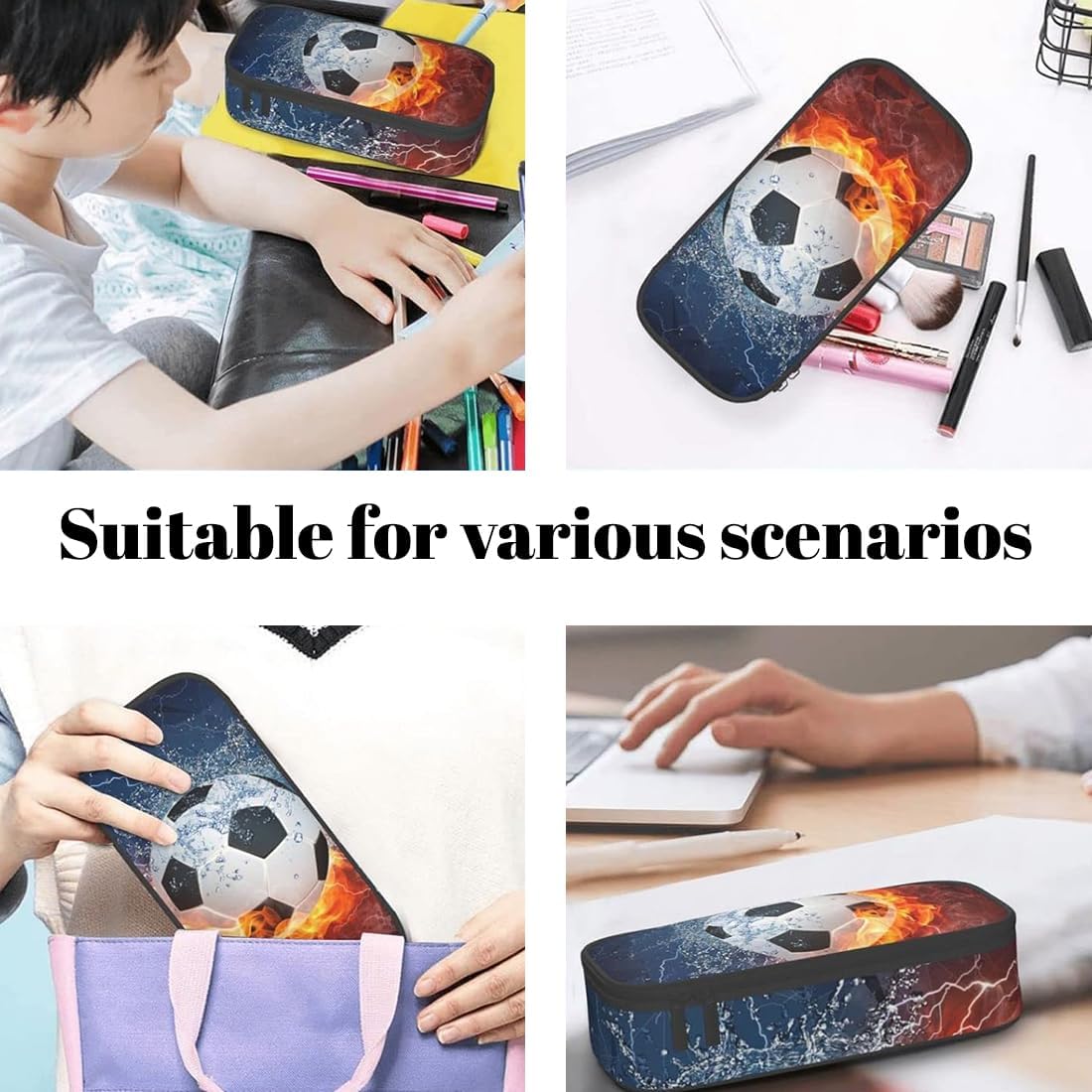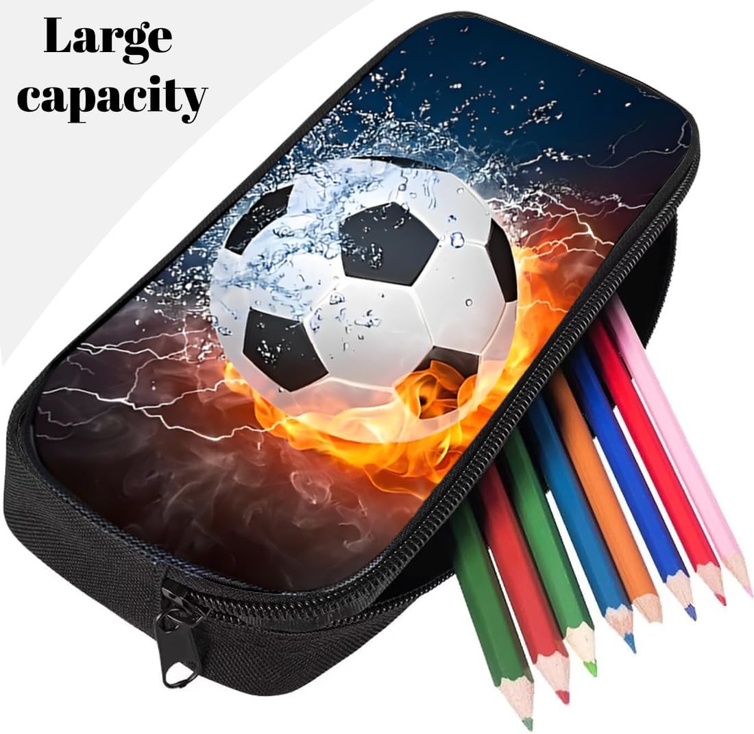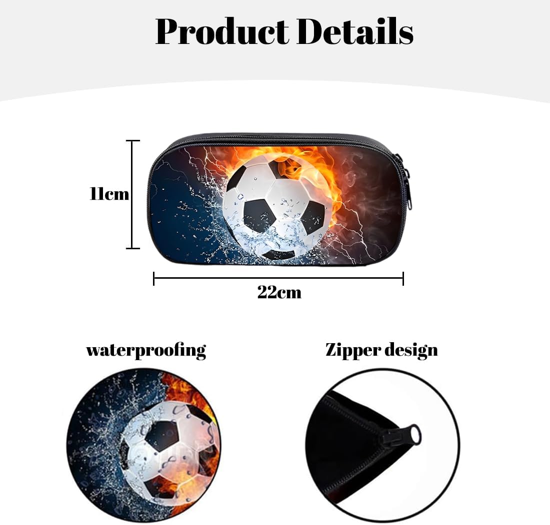 ALTA QUALITÀ:Astuccio calcio Realizzato in resistente tessuto di poliestere, robusto e durevole, zip robusta, adatto a bambini di età compresa tra i 3 e i 15 anni. Dimensioni: 22 cm x 11 cm x 5 cm. Si prega di consentire 1-3 cm di errore a causa della misurazione manuale, si adatta a tutte le penne o matite di dimensioni standard. Grande capacità: È una borsa organizzatrice per le carte, che aiuta a separare gomme, spillatrici, graffette, forbici, carte e altri piccoli oggetti. Ampiamente utilizzato:Astuccio calcio Può essere utilizzato come borsa portapenne per l'ufficio e la scuola, per viaggi di lavoro o come piccola borsa degli attrezzi, borsa per il trucco delle ragazze, portamatite da disegno per artisti e designer. REGALO PERFETTO: È un regalo di laurea, di ritorno a scuola o di compleanno per ragazzi e ragazze. Può essere usato come regalo per bambini, compagni di classe, amici o studenti.