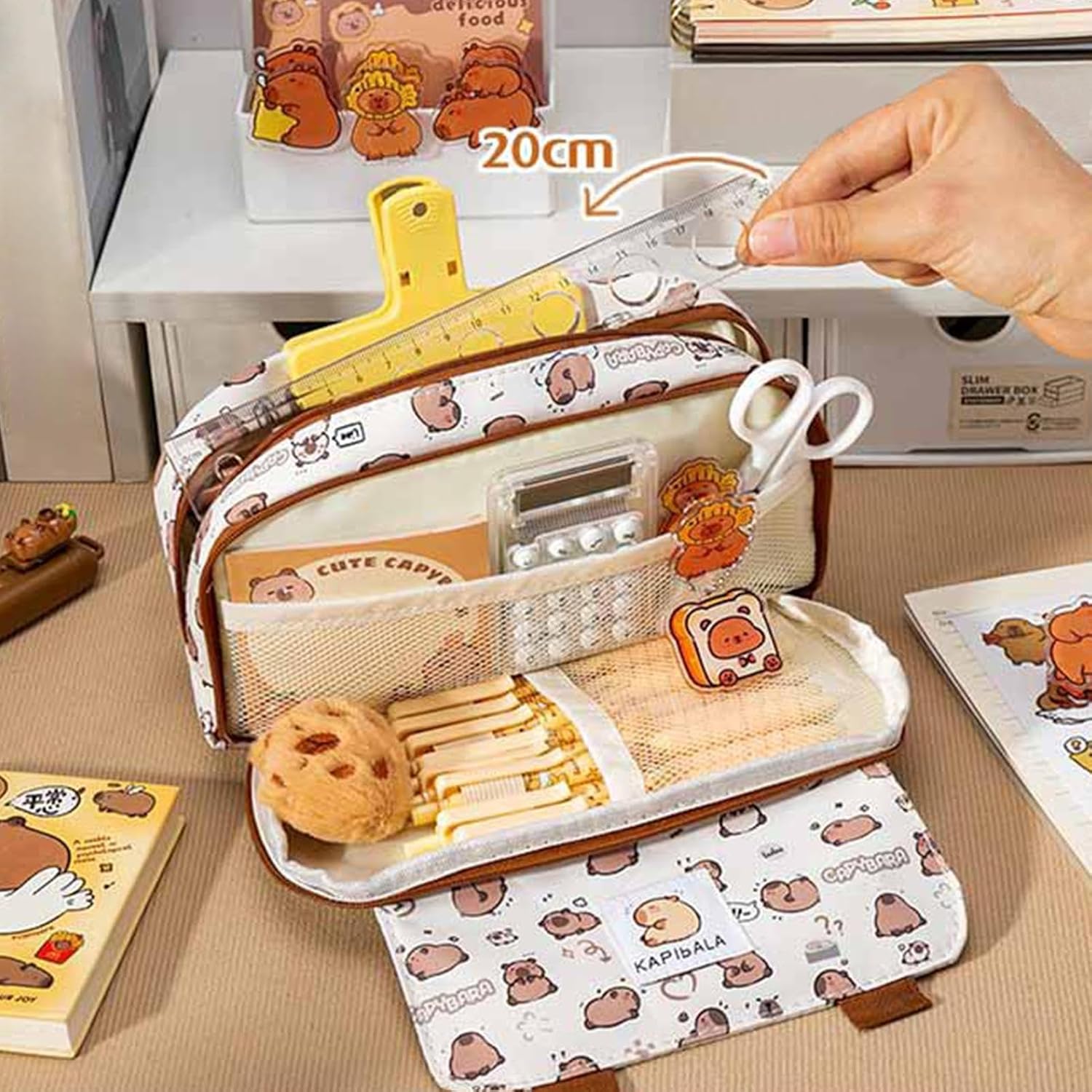Design funzionale: distribuzione interna studiata che assegna posizioni definite per gomme, forbici e materiale, promuovendo l'accesso intuitivo e riducendo il disordine nell'astuccio scolastico. Idee regalo significative: esprime cura e auguri con questo simpatico astuccio per matite capibara, un regalo pratico e con significato perfetto per bambini, insegnanti, compleanni e feste, creando un ricordo memorabile per ogni occasione speciale. Compagno moderno: il design versatile assicura un'efficiente organizzazione di scrittura e accessori utili, ideale per studenti e professionisti che apprezzano uno spazio e produttivo Resistenza durevole: realizzato con materiali di qualità per prestazioni durature, questo astuccio è resistente all'usura e affidabile per l'uso quotidiano, mantenendo il suo bell'aspetto nel tempo, garantendo funzionalità e stile costanti per le vostre esigenze quotidiane. Organizzazione che consente di risparmiare tempo: L'ampia apertura facilita l'accesso alle forniture, aiutandoti a vedere e afferrare rapidamente gli oggetti, modernizzando le attività quotidiane in studi o ambienti di lavoro.