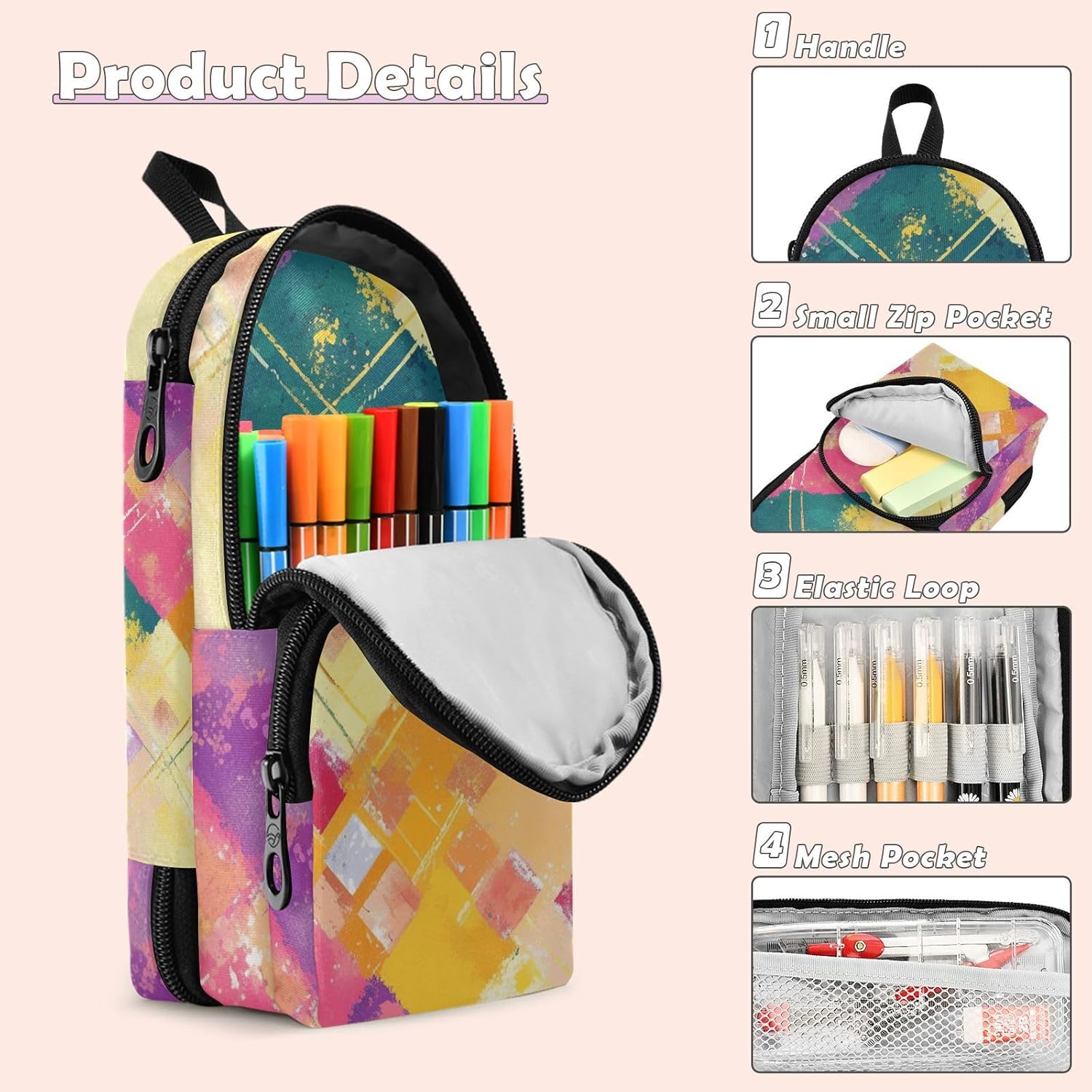 Grande capacità: le dimensioni precise di 23,4 x 9,9 x 7,9 cm e lo spazio interno da 1600 ml sono appositamente progettati per un gran numero di matite sottili. Gli astucci si adattano perfettamente alle tue esigenze di trasporto e conservazione ed è un potente aiuto per lo studio e il lavoro. Multifunzionale: questo astuccio con cerniera a tre strati non può contenere matite, ma può anche essere utilizzato per riporre piccoli articoli di cancelleria come gomme, righelli e temperamatite, ottenendo un'integrazione multifunzionale e garantendo che i tuoi strumenti di apprendimento siano tutti disponibili. Materiale: realizzati in nylon di buona qualità, gli astucci per la scuola sono robusti e robusti, con buone proprietà impermeabili e resistenti all'usura, proteggono efficacemente le matite e altri articoli di cancelleria da eventuali danni. Design: il design unico con stampa senza cuciture ha motivi squisiti e colori vivaci e duraturi, rendendo il tuo astuccio distinguersi tra molti articoli di cancelleria e evidenziando la tua personalità e il tuo gusto. Età consigliata: dai 3 anni in su. Non adatto ai bambini di età inferiore ai 3 anni. Se avete qualche problema con questo astuccio estetico, vi preghiamo di contattarci via e-mail.