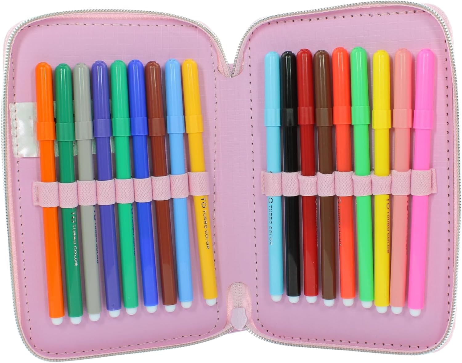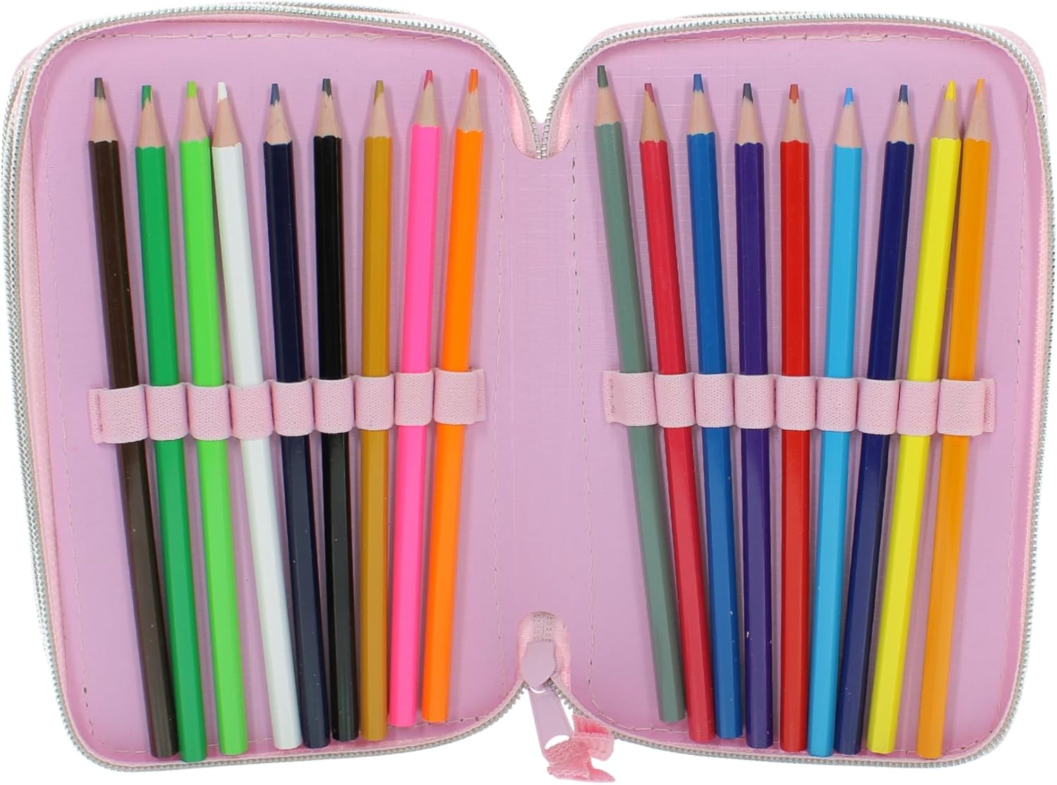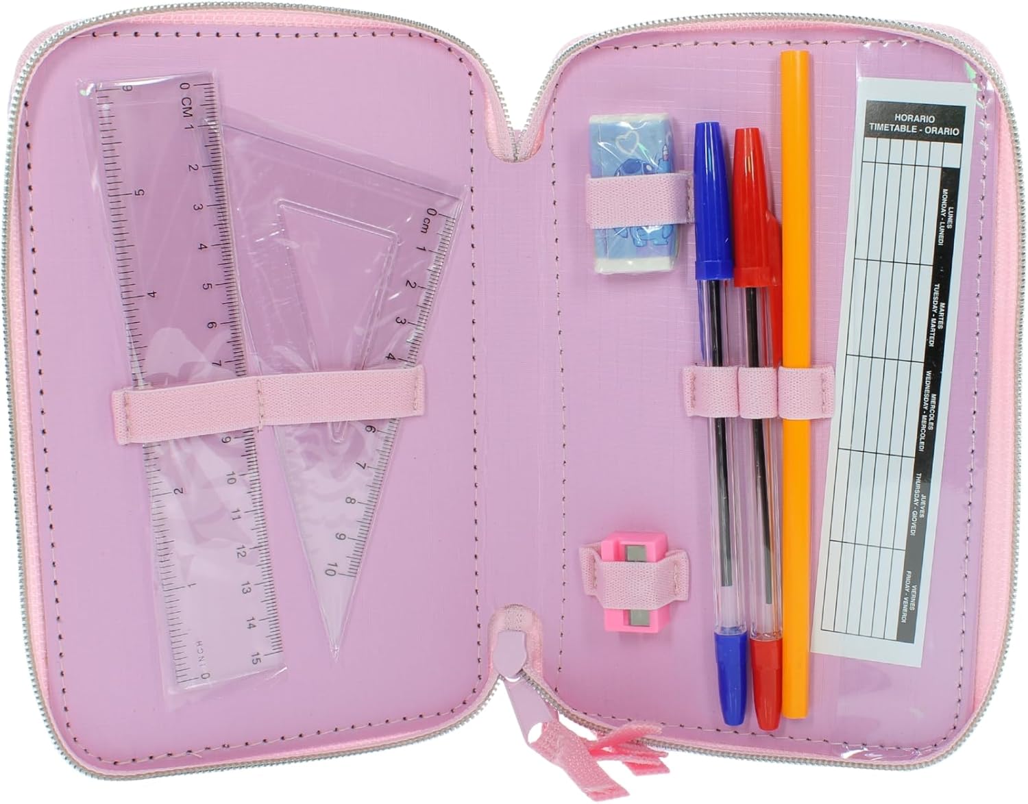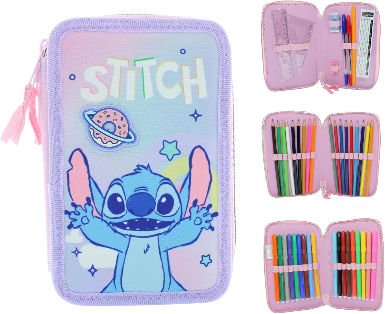 CONTENUTO ACCESSORI GIOTTO: Completo con pastelli, penne, matite e strumenti base per la scuola. DESIGN GALATTICO DISNEY: Stitch nello spazio tra pianeti e stelle, su sfondo rosa/lilla. 3 SCOMPARTI CON ZIP: Grande capacità per tenere separati e ordinati tutti gli accessori. COLORI PASTELLO: Tono allegro e di tendenza, amatissimo da bambine e ragazze. RESISTENTE E FUNZIONALE: Materiali durevoli, ideali per l’uso scolastico intensivo. IDEA REGALO ORIGINALE: Perfetto per ogni fan di Stitch e del mondo Disney.