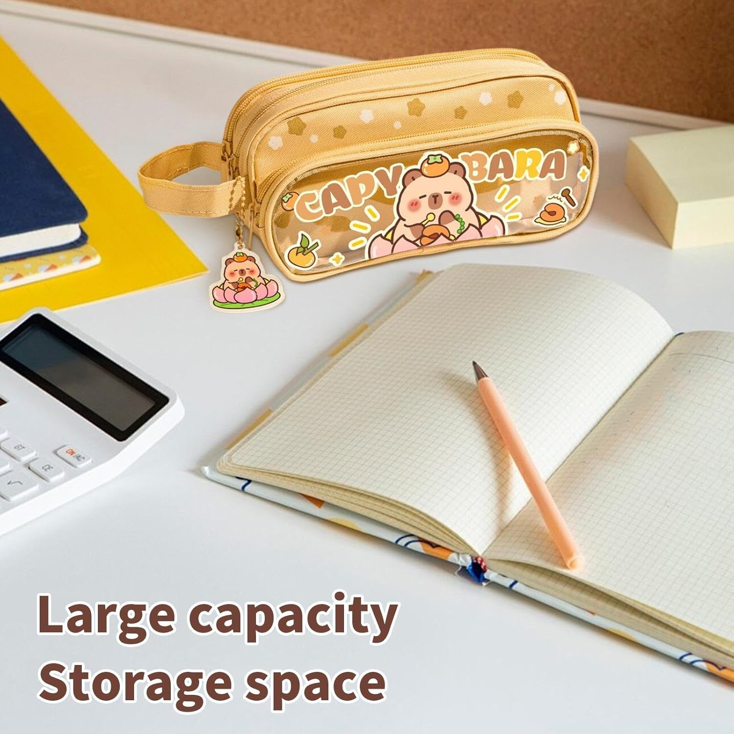 Design per Bambini: Presenta una calda tavolozza cromatica e adorabili illustrazioni di capibara e orsi, portando gioia nelle attività quotidiane grazie a un design coinvolgente che favorisce l'uso costante da parte dei bambini. Longevità Garantita: Materiali indistruttibili e sicuri per l'infanzia contrastano giornalieri, preservando l'integrità del prodotto senza sviluppare odori anche dopo un utilizzo intensivo nel Maniglia Ergonomica: Manico portatile studiato per comfort e impugnatura morbida, facilità d'uso durante ore scolastiche o gite ricreative per esperienze senza fatica Spazio Ottimizzato:Comparti a 3 livelli per 100 penne assicurano ordine, aumentando l'efficienza nello studio con spazio dedicato a righelli e oggetti essenziali. Organizzazione Visibile: Finestra trasparente per accesso immediato agli oggetti essenziali unendo design elegante e funzionalità pratica riduce i tempi di ricerca e semplifica la routine quotidiana mantenendo tutto in ordine