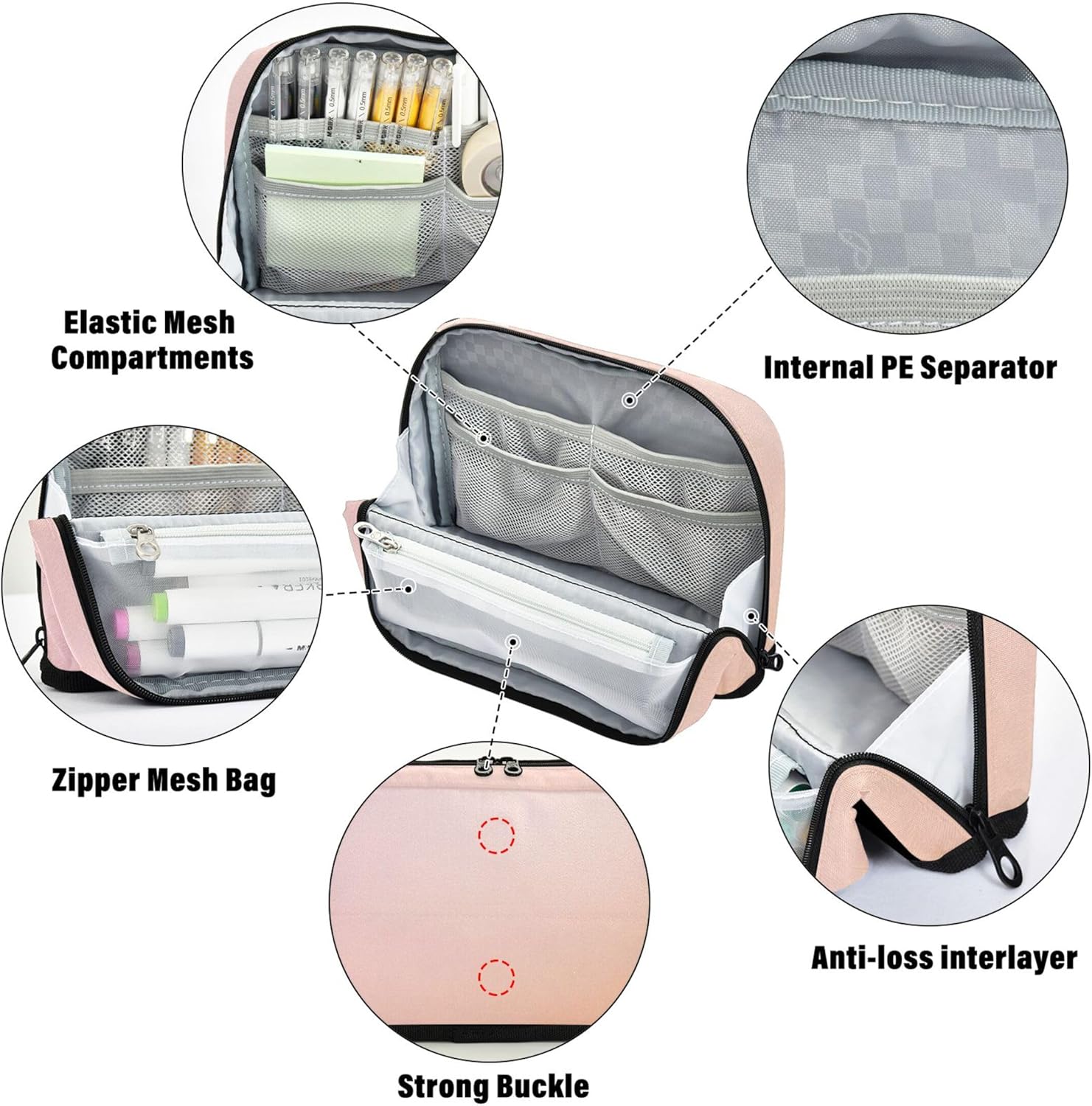 Versatile funzionalità in piedi: le borse per insegnanti si aprono piatte e si ripiegano in modo sicuro per creare un contenitore autoportante, combinando la portabilità con la comodità della scrivania Resistente all'usura e lavabile: l'astuccio è realizzato in nylon di poliestere di alta qualità che resiste a graffi e macchie, offrendo allo stesso tempo un facile lavaggio a mano per una freschezza a lungo termine Grande capienza: dispone di uno scomparto principale, una tasca in rete con cerniera e una tasca aperta per organizzare penne, matite, gomme, temperamatite e foglietti adesivi Il tuo compagno multifunzionale: che si tratti di uno zaino, valigia o cassetto della scrivania, l'astuccio organizer fornisce spazio intelligente per attrezzi, spazzole, caricabatterie e molto altro ancora Personalizzabile: con motivi vivaci e opzioni personalizzate per foto o testo, gli astucci con cerniera diventano un regalo premuroso per studenti, creativi e viaggiatori frequenti