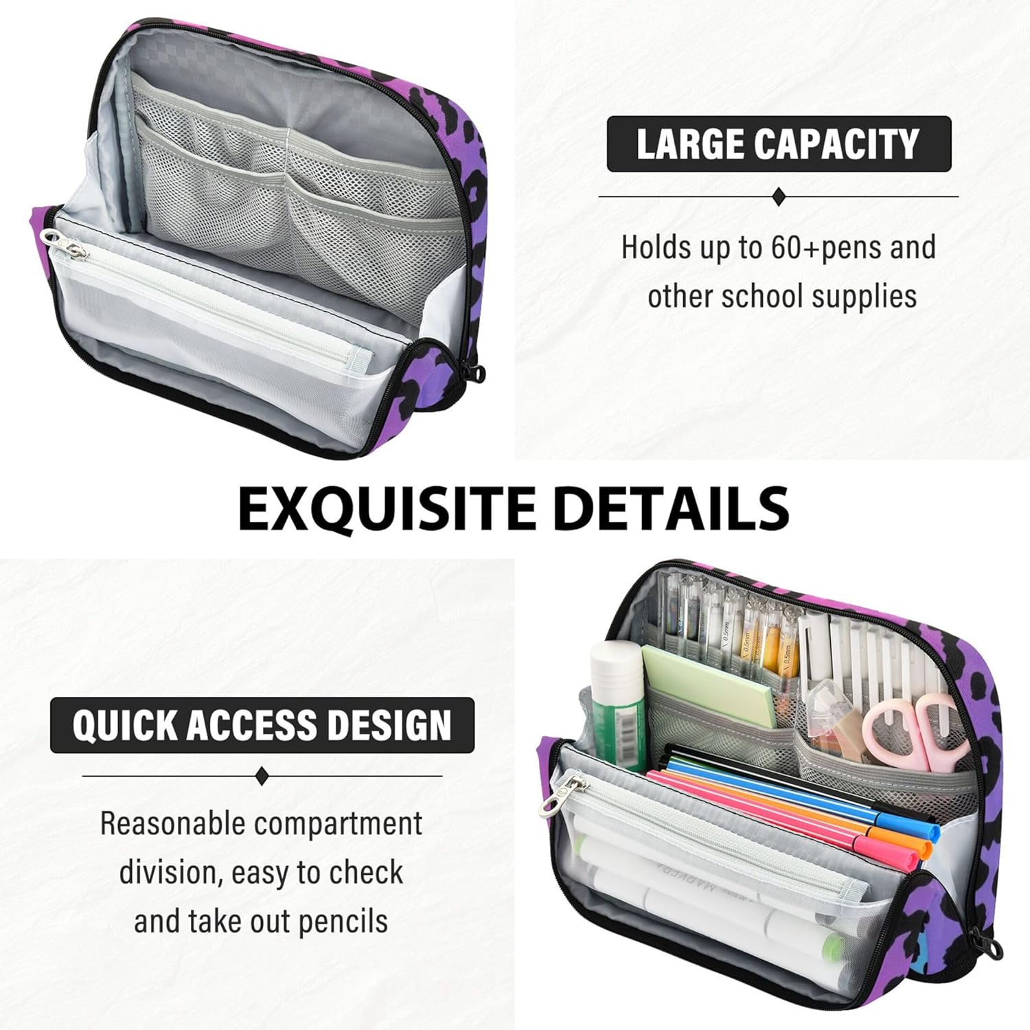 Versatile funzionalità in piedi: il simpatico astuccio si apre piatto e si ripiega in modo sicuro per creare un contenitore autoportante, mescolando la portabilità con la comodità della scrivania Progettato per la resistenza: dai banchi di scuola alle borse da viaggio, l'astuccio kawaii per bambini resiste a attrito e sporco, con nylon a trama fitta che fornisce affidabilità a lungo termine Spazio massimo di archiviazione: la custodia per l'organizzazione della classe utilizza un layout interno intelligente con tasche multiple per contenere tutto, dagli strumenti di scrittura ai piccoli accessori in ordine Adatto per varie impostazioni: utilizza il portamatite per riporre oggetti artistici, oggetti personali o strumenti da ufficio, ideale per studenti, pendolari, artisti o chiunque sia in viaggio Unico tuo: design vivaci ed elementi personalizzati trasformano la custodia da viaggio in un regalo elegante e significativo, ideale per bambini, scrittori o chiunque ami un tocco personale