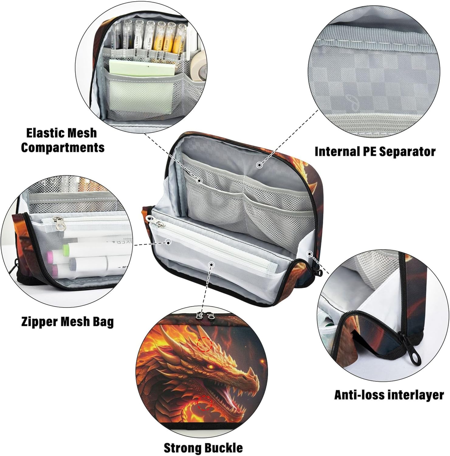 Funzione di supporto convertibile: con un intelligente sistema pieghevole e a scatto, l'astuccio carino sta in piedi sulla scrivania, consentendo di organizzare e accedere ai tuoi oggetti senza problemi Tessuto protettivo e pratico: realizzato in nylon resistente, l'astuccio è progettato per resistere ai danni, rendendolo ideale per viaggi, scuola o spostamenti quotidiani Design versatile con scomparti: la custodia per l'organizzazione della classe ti aiuta a rimanere organizzato con un interno spazioso con aree distinte per tutti i tuoi articoli di cancelleria, strumenti o cosmetici Non solo per cancelleria: l'astuccio con cerniera è pronto per contenere materiale scolastico, oggetti essenziali da viaggio o prodotti di bellezza, adattandosi perfettamente a ogni stile di vita Ideale per occasioni speciali: i simpatici astucci offrono un tocco personale con stampe vivaci e personalizzazione opzionale, adatti per laurea, compleanni o rientro a scuola