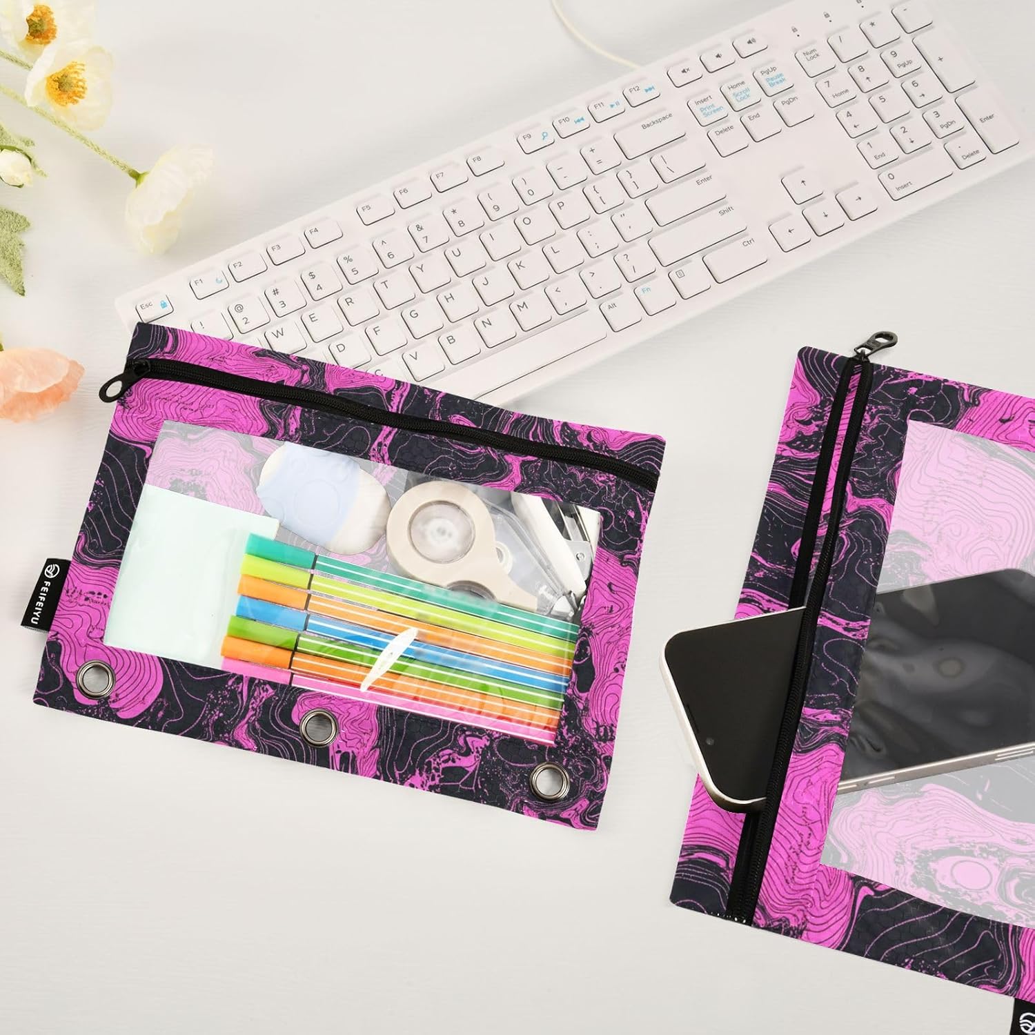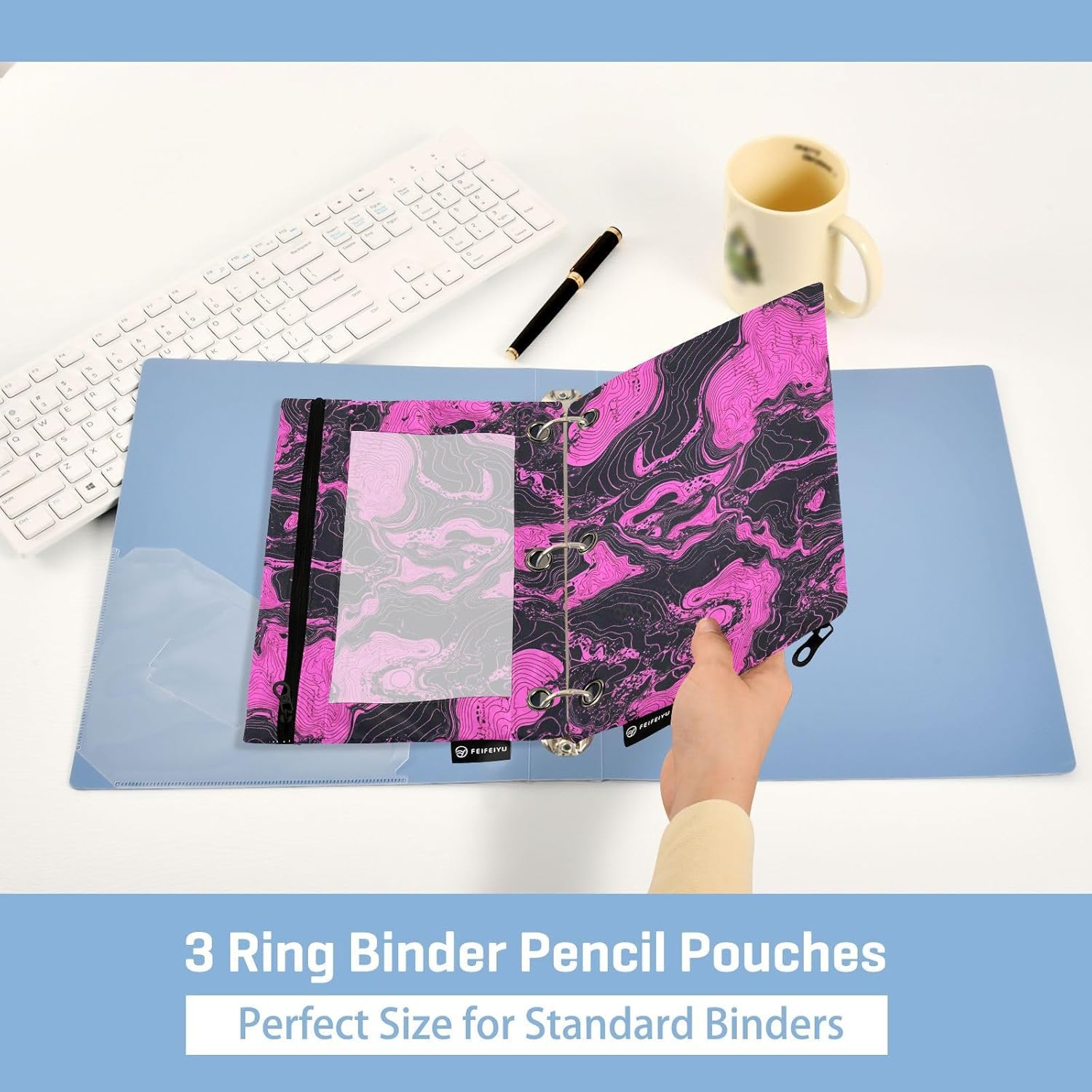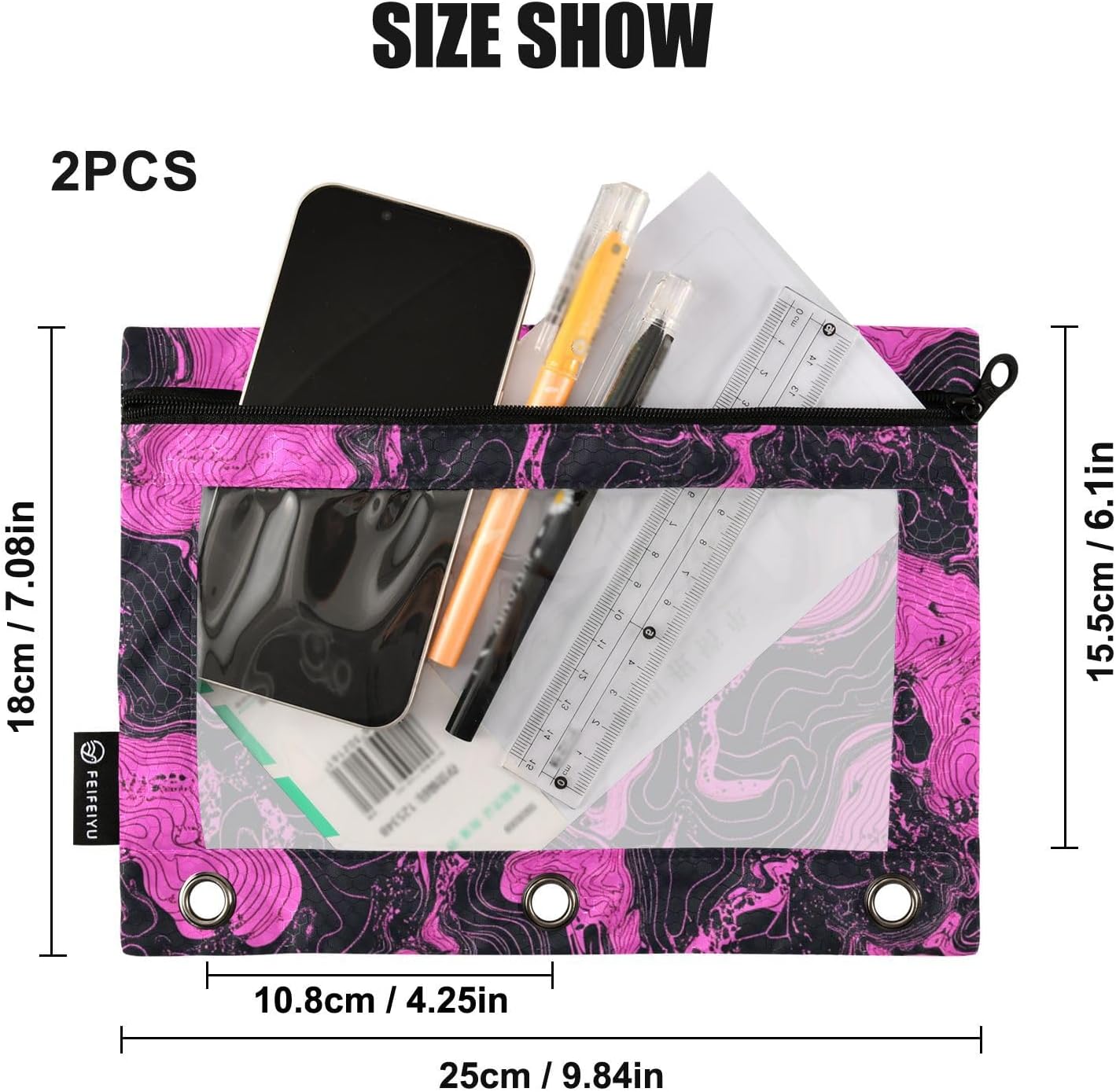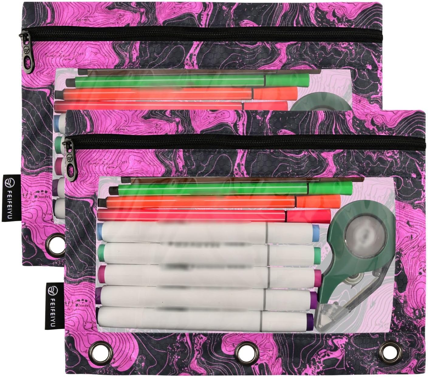 Qualità premium: l'astuccio a 3 anelli realizzato in griglia da calcio resistente all'acqua e lucida fornisce una protezione affidabile per documenti importanti contro le fuoriuscite d'acqua quotidiane ed è abbastanza robusto da rimanere con te a lungo per le tue esigenze di gestione dei documenti. Grande capacità: cerniera da 25 x 18 cm (dimensioni effettive utilizzabili: 15,5 x 25 cm) fornisce un'opzione efficiente per riporre matite, penne, articoli di cancelleria, cosmetici, oggetti essenziali quotidiani e altri piccoli oggetti; il design brillante è ottimo per insegnanti, studenti, adulti, adolescenti e bambini. Finestra di visualizzazione trasparente: il design trasparente della finestra in PVC sulla parte anteriore dei sacchetti con cerniera a 3 anelli consente di vedere rapidamente documenti o loghi importanti all'interno attraverso la finestra trasparente senza aprire la cartella, rendendo facile trovare rapidamente ciò di cui hai bisogno. Cerniera in metallo liscio: la cerniera solida può impedire che il contenuto delle buste con cerniera cada accidentalmente o si perda fornendo una migliore protezione soprattutto durante il trasporto o lo spostamento. Fa anche in apparenza più regolare, aggiunge anche un certo grado di estetica. Facile capovolgimento e ricerca senza sforzo: la struttura capovolgente unica nel suo genere consente di girare facilmente ogni pagina della cartella senza arduo processo di ricerca. Sia in ufficio che a casa, può risparmiare tempo ed energia.