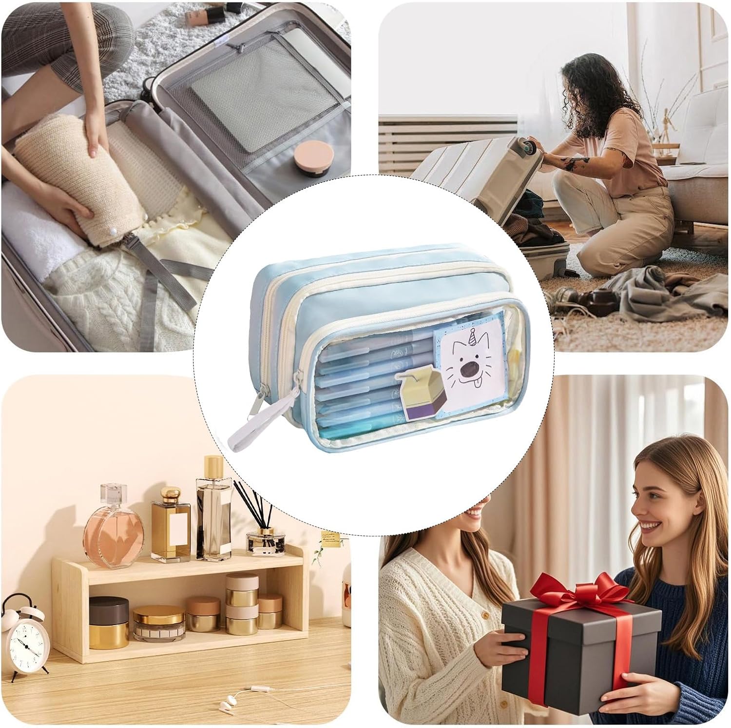 Design a strati trasparente: questo design innovativo offre una chiara visibilità del contenuto, combinando sezioni multi-scomparto per bagagli e attrezzi da viaggio per ottimizzare l'efficienza del lavoro e semplificare efficacemente la gestione della cancelleria Soluzione versatile: ideale per organizzare cosmetici, campioni di prodotti per la cura della pelle o gioielli, questo astuccio si adatta facilmente a bagagli e attrezzi da viaggio per scuola, studio o uso in viaggio, garantendo praticità in ogni ambiente Opzioni di trasporto versatili: caratterizzato da un design con manico portatile e attacco laterale sullo zaino, questo astuccio da viaggio offre modalità di utilizzo flessibili per migliorare la comodità quotidiana, garantendo praticità e facilità d'uso ovunque tu vada Design dai colori vivaci: i colori vivaci incontrano la fusione creativa degli elementi dei cartoni animati, per supportare diverse espressioni di stile, bagagli e attrezzatura da viaggio consentendo soluzioni di organizzazione regolabili Funzionalità con cerniera scorrevole: garantisce un rapido accesso agli oggetti memorizzati, con la sua chiara funzione di visualizzazione, supportata dalla resistenza della cerniera a lunga durata e dalla maneggevolezza tattile di facile utilizzo