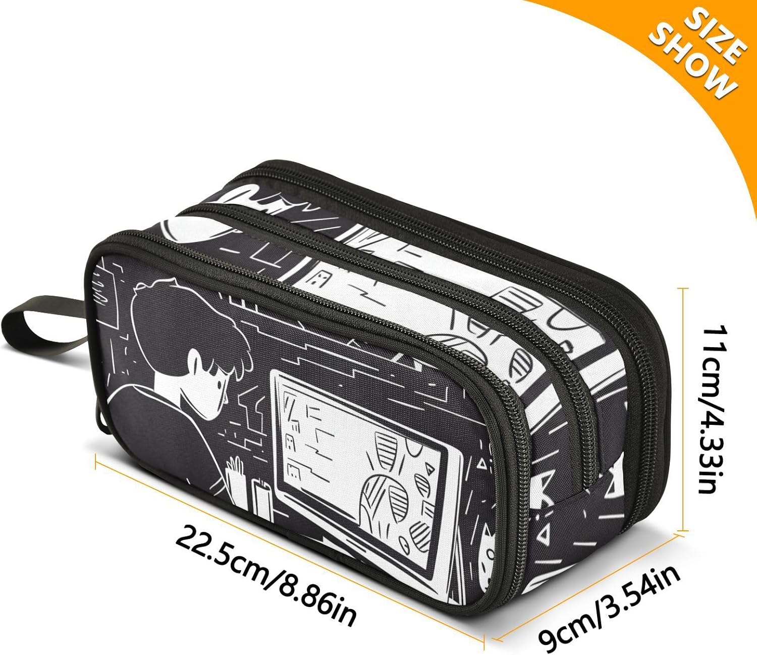 Dimensioni: 22,5 x 9 x 11 cm. Big Pencil Bag è completamente stampato e ha tre strati. La borsa a catena offre ampio spazio di archiviazione, che può separare e ordinare i diversi oggetti e può ospitare quasi tutto ciò di cui gli studenti hanno bisogno. Materiale: questo astuccio scolastico è realizzato in nylon di qualità, resistente e duraturo. Dimostra una buona resistenza all'usura. Sia per l'uso quotidiano che per essere portato in giro, può far fronte a varie sfide e tenerti compagnia a lungo. Multiuso: oltre ad essere un astuccio per la scuola, può anche essere utilizzato per riporre piccoli strumenti, ecc. È un aiuto multiuso nella tua vita. Che tu sia uno studente, un impiegato o un artista, puoi trarne profitto. Design: il processo di produzione è meticoloso, con punti saldi e una cerniera liscia che è facile da tirare. Nel frattempo, il design semplice e alla moda di astucci per ragazzi, insieme a una varietà di scelte di colore, soddisfa le tue esigenze individuali e ti consente di mostrare un gusto unico nello studio o nel lavoro. Suggerimento per la pulizia: quando si pulisce l'astuccio in modo normale, è sufficiente pulirlo con un panno umido per eliminare le macchie sulla superficie. Lavabile a mano. Non può essere lavato in lavatrice e non include candeggina.