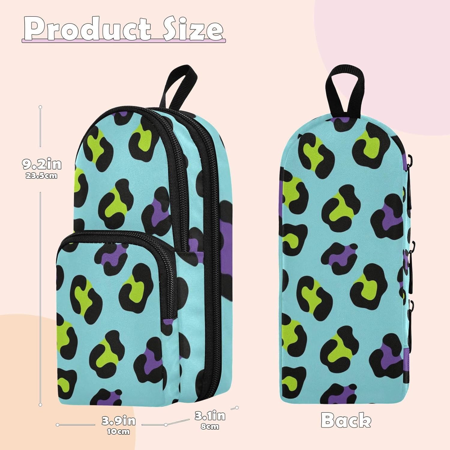 Conservazione: le dimensioni compatte di 23,4 x 9,9 x 7,9 cm, combinate con la grande capacità di 1600 ml, rendono questo astuccio comodo da trasportare soddisfacendo le vostre esigenze di carico. È un compagno per la tua creazione sempre e ovunque. Multifunzionale: questo astuccio a tre strati per ragazze adolescenti non può contenere matite ma anche essere utilizzato per riporre piccoli articoli di cancelleria come gomme, righelli e temperamatite, ottenendo un'integrazione multifunzionale e garantendo che i tuoi strumenti di apprendimento siano tutti disponibili. Materiale: il nylon accuratamente combinato con squisita fattura, rende i punti dell'astuccio saldi e la cerniera robusta, portandoti un'esperienza di utilizzo gioiosa e bella. Design: il design unico con stampa senza cuciture ha motivi squisiti e colori vivaci e duraturi, rendendo il tuo astuccio distinguersi tra molti articoli di cancelleria e evidenziando la tua personalità e il tuo gusto. Età consigliata: dai 3 anni in su. Non adatto ai bambini di età inferiore ai 3 anni. Se avete qualche problema con questo astuccio estetico, vi preghiamo di contattarci via e-mail.