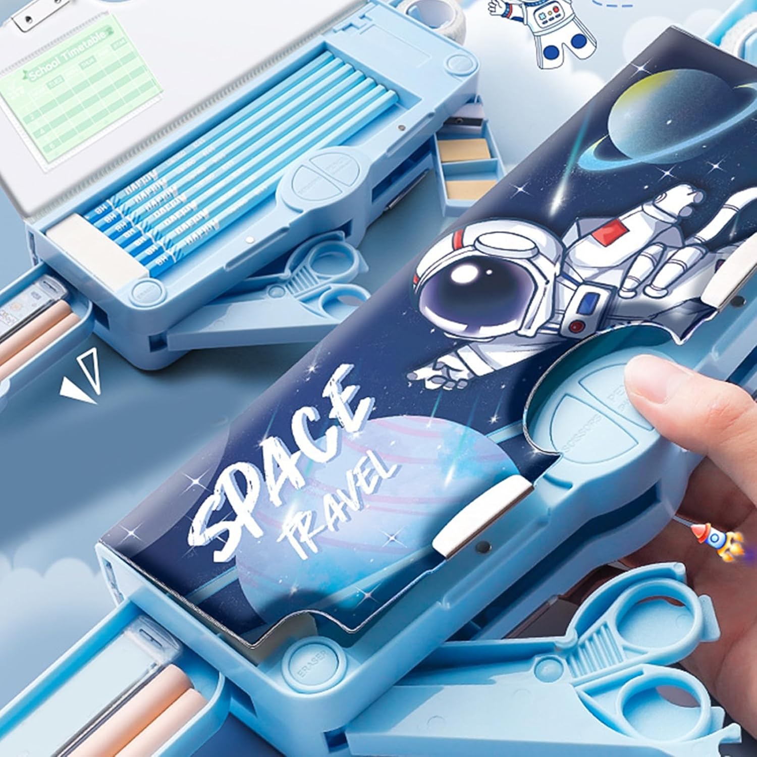 Scopri il divertimento del nostro astuccio multifunzionale per bambini, materiale scolastico, che viene fornito con forbici, temperamatite, orario scolastico, nastro per dita, righello trasparente e gomma. Realizzato in polipropilene, questo astuccio è resistente all'usura e all'acqua, garantendo un uso prolungato pur mantenendo il suo bell'aspetto. Molto adatto per bambini, bambini in età prescolare, ragazzo, ragazza, studenti, adolescenti e appassionati di diari, questo astuccio per penne con più scomparti per diverse esigenze di archiviazione. Ampiamente usato per scuola, viaggi, casa, questo astuccio multifunzionale aiuta a mantenere ordinata e ordinata la scrivania di studio, rendendolo accessorio essenziale per la collezione di forniture scolastiche per bambini. Questo astuccio multifunzione combina praticità e divertimento, rendendolo un ottimo regalo per le vacanze per bambini, ragazzi, ragazze e bambini in età prescolare. Adatto anche per regali di compleanno per bambini, regalo di Natale, riempitivi per calze, forniture per il ritorno a scuola degli studenti