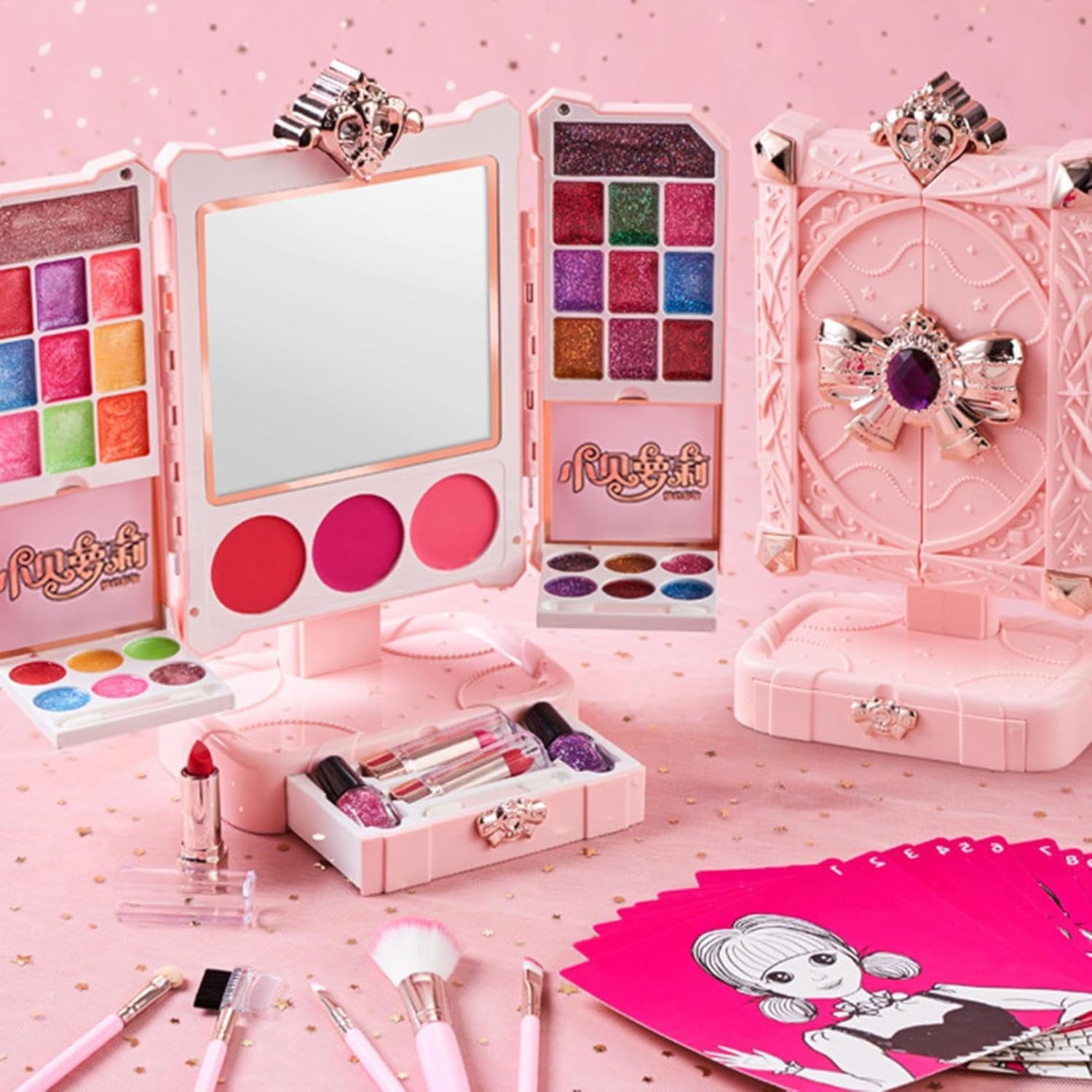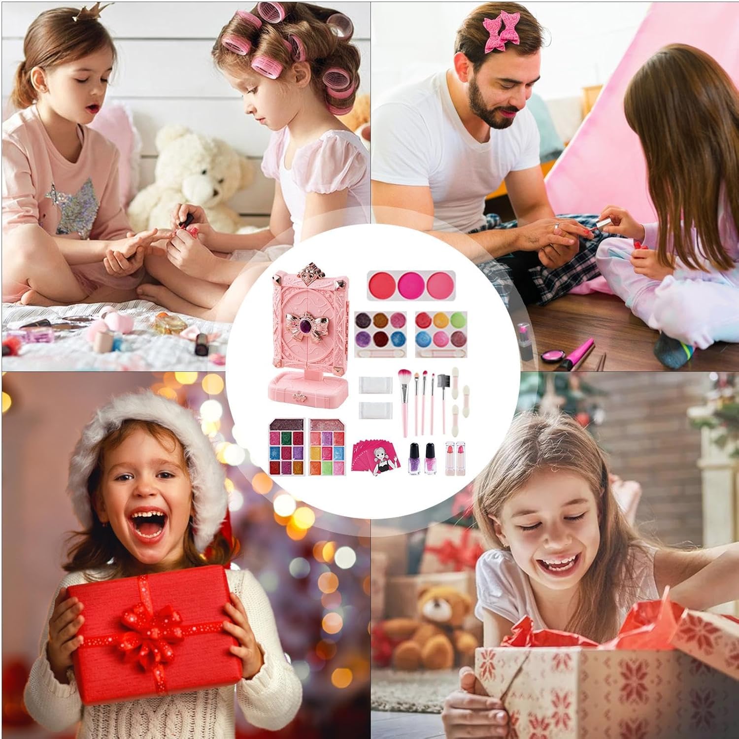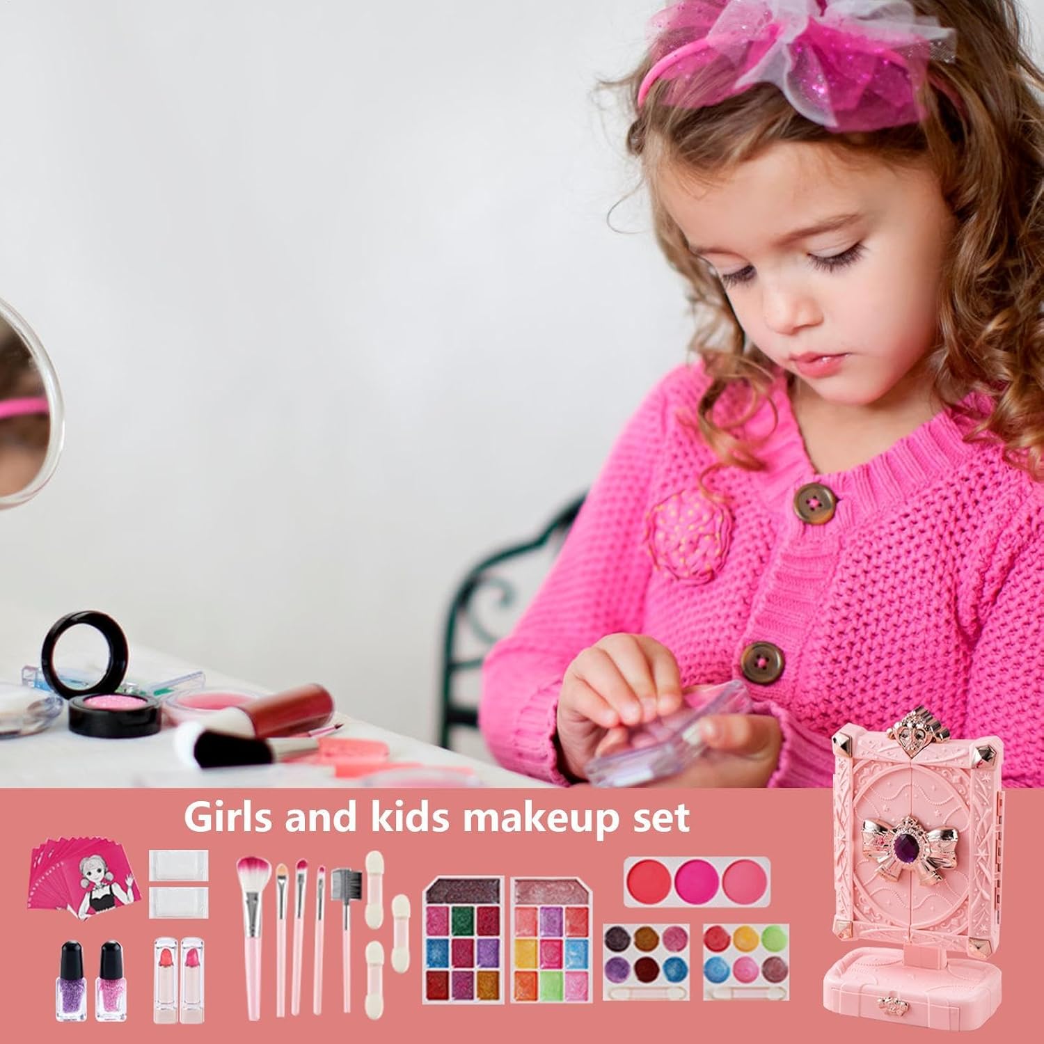 COMODO STOCCAGGIO PER I TRUCCHI: mantieni i trucchi del tuo bambino ordinati e organizzati con la nostra scatola per cosmetici appositamente progettata, facile da aprire e chiudere. Questa scatola è perfetta per i bambini dai 3 ai 10 anni. Previene l'accumulo di polvere ed è incredibilmente comoda quando si viaggia, permettendo a tuo figlio di portare con sé i suoi prodotti preferiti per il trucco ovunque vada. Facile scoperta della bellezza: vivi la fantasia di bellezza di tuo figlio con il nostro set trucco per bambini con una selezione colorata di cosmetici come rossetto e fard. Combina l'istruzione con l'intrattenimento mentre imparano ad allenare la loro percezione estetica e ad aumentare la loro sensibilità estetica: il regalo perfetto per ogni bambina Trucco a misura di bambino: con i nostri set di trucco per bambini sicuri e delicati, tuo figlio può esprimere la propria creatività senza danneggiare la sua pelle sensibile. Il nostro trucco non irrita, è sicuro e facile da pulire ed è la scelta perfetta per ore di divertimento ed espressione personale. Strumento multiuso: i nostri set trucco per bambini sono perfetti da regalare in varie occasioni come compleanni, Natale, Capodanno o Festa dei bambini. Questo adorabile set di trucchi farà sentire la tua bambina una vera principessa Perfetto per il gioco creativo: questo set di trucchi per bambini è un modo divertente per incoraggiare la creatività e l'immaginazione. Con il suo design carino e i colori vivaci, aiuta le ragazze ad apprendere le abilità essenziali del trucco promuovendo al contempo le loro capacità artistiche. Perfetto per migliorare l'estetica e il gioco fantasioso delle ragazze