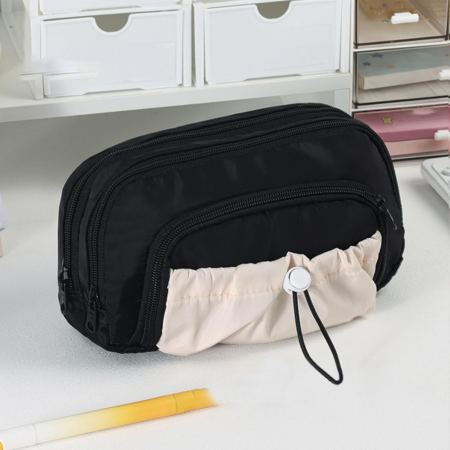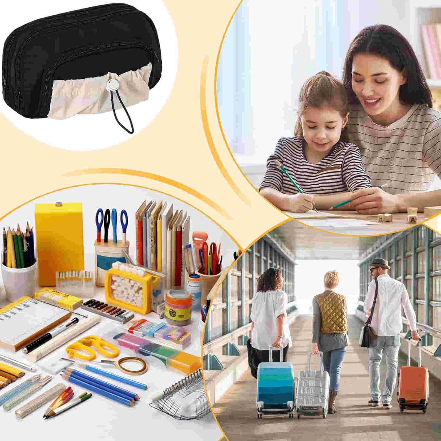 Design interno versatile: progettato per contenere più di 100 penne e matite, questo astuccio può contenere anche calcolatrici, righelli, fornendo allo stesso tempo una rete elastica e scomparti con coulisse, fornendo tutto rimane ben organizzato Organizzazione efficiente degli strumenti: questo astuccio offre un layout di cancelleria ad accesso rapido e una finestra di accesso semiaperta, progettato per contenere strumenti lunghi come pennelli e righelli, mentre la custodia espandibile con coulisse migliora la sua versatilità e adattabilità per l'uso quotidiano Integrità strutturale migliorata: presenta cerniere antiruggine e lisce, materiale in poliestere ad alta densità, cuciture rinforzate e una struttura ad alta resistenza per una lunga durata resistente all'usura nell'uso quotidiano Trasporto quotidiano senza sforzo: con il suo design leggero e compatto, questo astuccio offre una portabilità ordinata, si adatta comodamente a qualsiasi borsa o cassetto pur essendo facile da trasportare all'aperto, adatto per pendolari e viaggi Efficiente organizer quotidiano: progettato per lo studio e l'uso domestico, questo astuccio vanta un look moderno e neutro, fornendo soluzioni intelligenti per oggetti artigianali ed elettronica attraverso un design adattivo