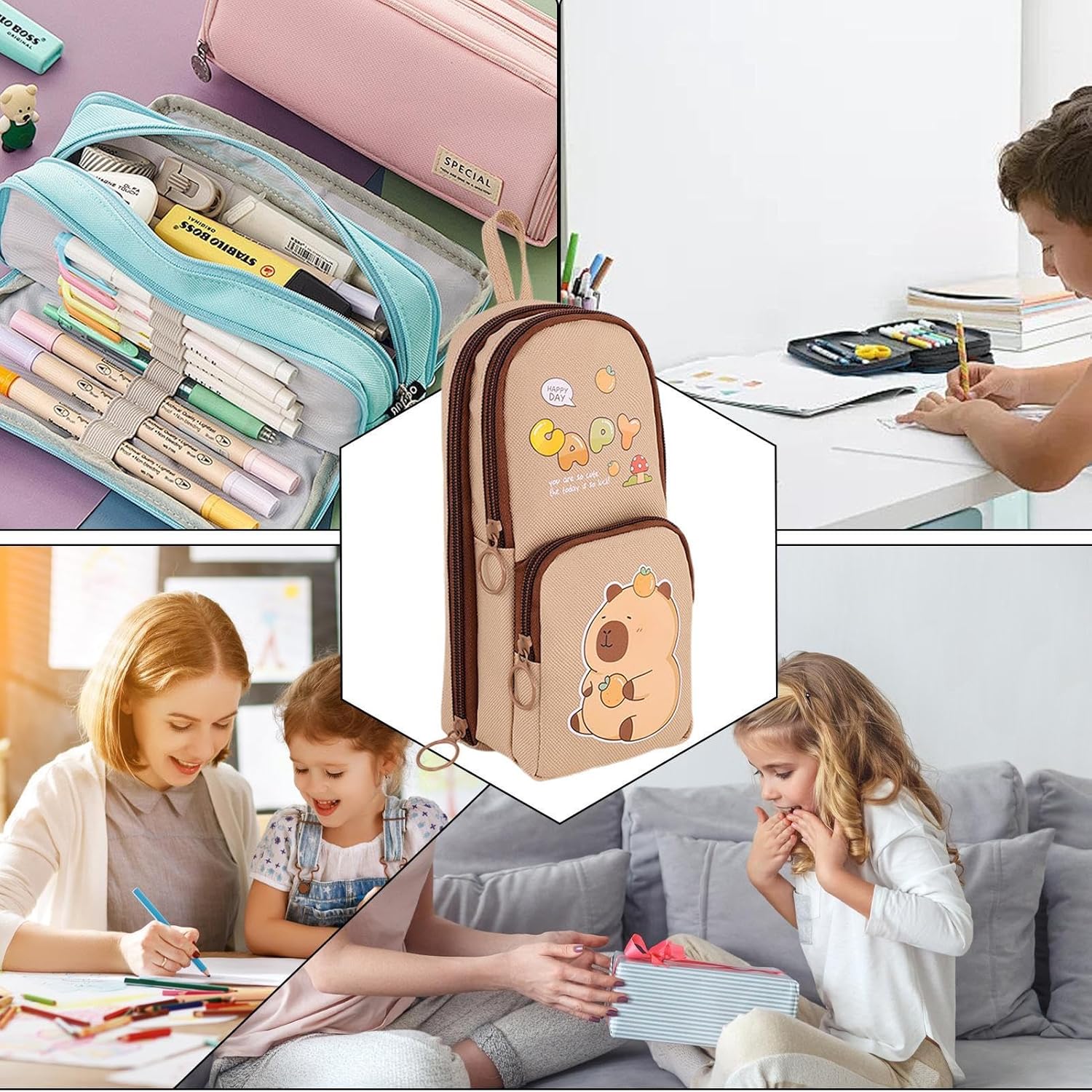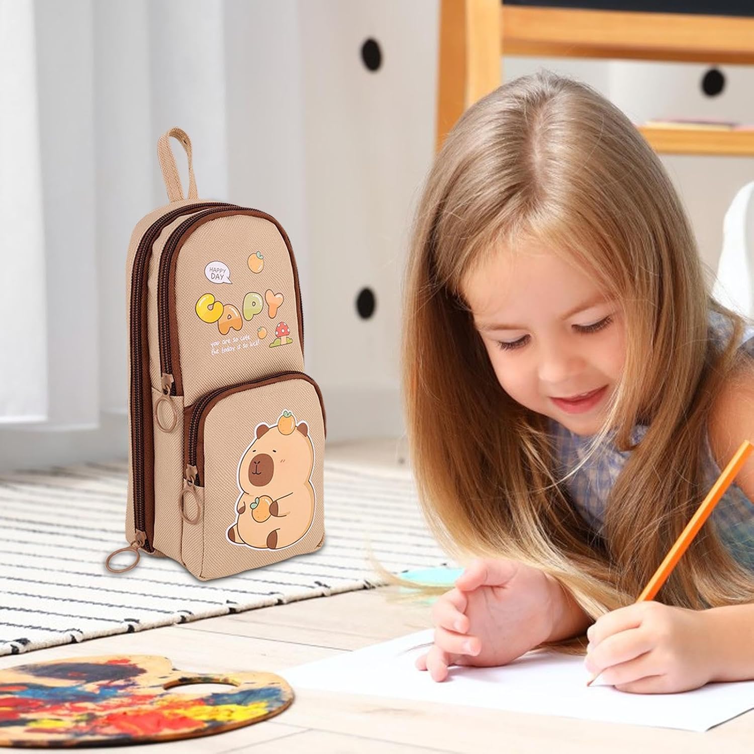 Organizzazione spaziosa: mantieni tutti i tuoi articoli di cancelleria in ordine con il design multistrato del nostro astuccio che offre abbondante spazio per penne, matite, gomme e altro ancora. Design accattivante: con i suoi accattivanti colori vivaci e l'affascinante forma a zaino piccolo, questo astuccio crea un'atmosfera divertente che esalta la gioia di imparare. Il grande design di questo astuccio stupirà sicuramente e lo rende uno strumento indispensabile per ogni studente. Materiale eccellente: realizzato in tessuto Oxford di alta qualità, questo astuccio carino ha un'eccellente resistenza allo sporco e all'usura, che garantisce la sua durata nel tempo. Il suo design robusto è perfetto per studenti e professionisti impegnati all'aperto. Facile da trasportare: goditi il morbido design con cerniera che apre e la custodia con facilità e portalo ovunque con la pratica maniglia per la massima portabilità. Ottimo regalo: squisitamente progettato e molto adatto come regalo per amici o parenti, questo grazioso astuccio migliora sia lo stile che la funzionalità.