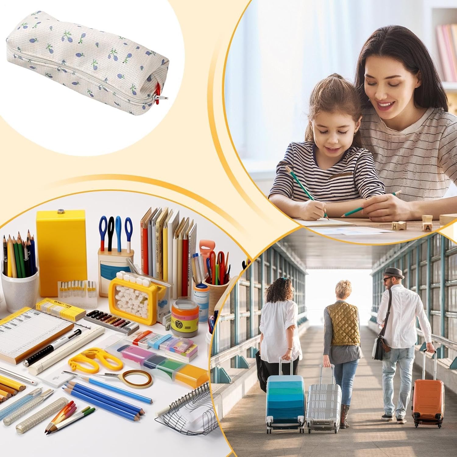 Sicuro e resistente: realizzato in poliestere di alta qualità, questo astuccio floreale protegge gli articoli pa da umidità, deformazioni e danni. Design impermeabile per la massima durata. Conservazione efficiente: con uno spazio interno ben progettato, questo astuccio floreale offre una facile classificazione e conservazione di molte penne, matite, gomme e altri piccoli articoli di cancelleria. Mantieni la tua scrivania in ordine e non ingombrare facilmente. Molteplici funzioni: l'astuccio floreale non è solo un astuccio, ma funge anche da custodia multifunzionale, ideale per organizzare le tue cose quotidiane e può anche essere utilizzato come elegante trousse per cosmetici. Facile da trasportare: porta le tue penne e matite con te ovunque tu vada con il nostro astuccio a forma di fiori. Il design compatto e leggero lo rende facile da riporre nella borsa della scuola o nella borsa, perfetto per la scuola, il posto di lavoro e i viaggi. Fascino creativo: aggiorna il tuo arredamento con il simpatico motivo floreale di questo astuccio per matite aggiungendo un design e un tocco di colori vivaci. Le sue caratteristiche creative e belle lo rendono un vivace pezzo di espressione che crea un'atmosfera divertente e carina.