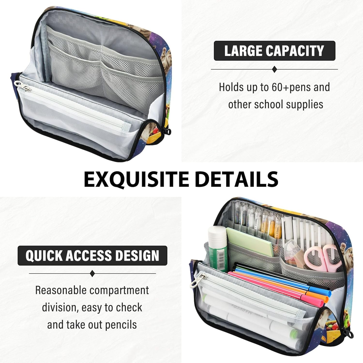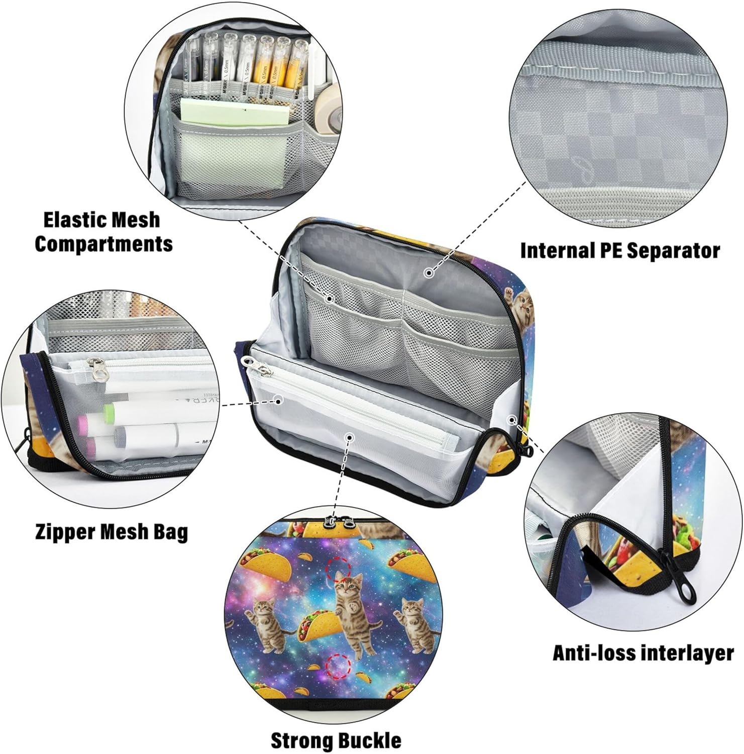 Modalità di supporto da scrivania: trasforma l'astuccio in un supporto compatto con una sola piega, risparmiando spazio e offrendo un facile accesso a tutti gli oggetti conservati durante l'uso Finitura in nylon di alta qualità: l'astuccio per matite combina una consistenza morbida con un'elevata durata, resistendo all'usura preservando un aspetto lucido nel tempo Interno pulito e spazioso: progettato per la comodità, l'astuccio per la scuola separa i tuoi oggetti utilizzando una sezione principale, una tasca in rete con cerniera e una tasca aperta per un rapido recupero degli oggetti Progettato per un uso multiuso: che tu stia andando a lezione o per un viaggio, l'astuccio preppy si adatta facilmente come astuccio per il trucco, astuccio per penne o organizer per la giornata lavorativa Personalizzabile: con motivi vivaci e opzioni di foto o testo personalizzate, gli astucci per ragazze kawaii diventano un regalo premuroso per studenti, creativi e viaggiatori frequenti