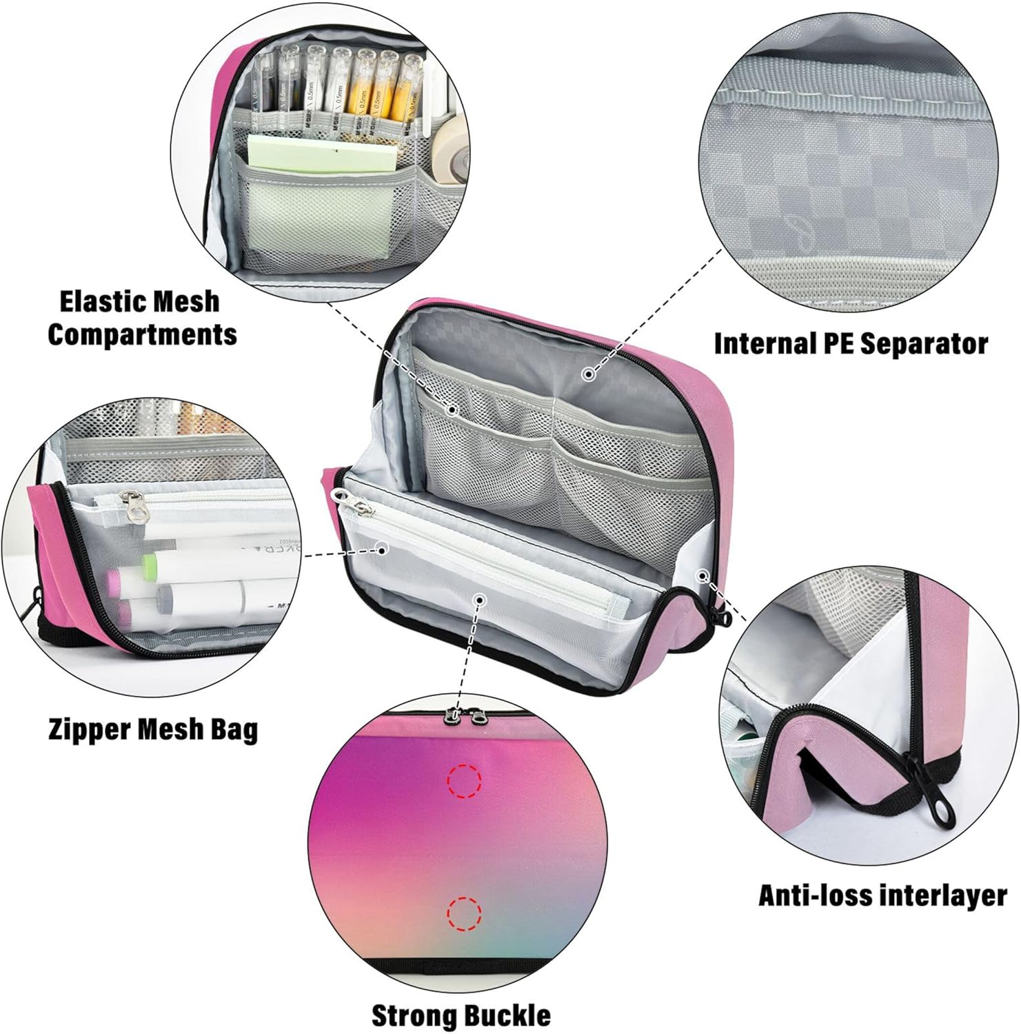 Funzionale design magnetico a scatto: ripiegare la borsa e lasciare che il magnete integrato la tenga salda: il materiale scolastico per ragazze si trasforma in un elegante ed efficiente organizer da scrivania in pochi secondi Scelta del materiale di alta qualità: l'astuccio estetico utilizza nylon robusto che resiste all'abrasione, resiste agli strappi e rimane pulito con il minimo sforzo, adatto per studenti impegnati e creativi Spazioso ma compatto: l'astuccio estetico offre ampio spazio all'interno con scomparti che aiutano a classificare gli oggetti essenziali quotidiani mantenendo una forma elegante e portatile Multiuso: l'organizer per matite funziona come astuccio per penne, trousse per trucchi, kit da viaggio o organizer per ufficio, ideale per scuola, lavoro, gite e uso quotidiano Ottimo come regalo: sia per un giovane studente, un artista o un amico in viaggio, l'astuccio rosa carino può essere personalizzato con testo o immagini per creare un ricordo memorabile
