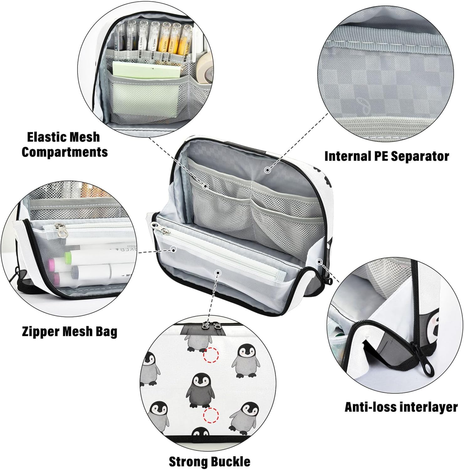 Design intelligente della struttura: la custodia per l'organizzazione della classe si trasforma in un supporto con chiusura magnetica quando piegata, offrendo una visione chiara e un facile accesso alle tue forniture Costruito per un uso di lunga durata: con cuciture rinforzate e tessuto in nylon resistente, astuccio carino maniglia per l'uso quotidiano con facilità, rimanendo in ottima forma anche con un uso intenso Organizer tutto in uno: che si tratti di matite, temperamatite o foglietti adesivi, l'astuccio impermeabile per matite ha scomparti per gestirli tutti, evitando il disordine e mantenendo le cose ordinate Il tuo compagno multifunzionale: che si tratti di uno zaino, valigia o cassetto della scrivania, i graziosi sacchetti con cerniera offrono spazio intelligente per attrezzi, spazzole, caricabatterie e molto altro ancora Personalizzabile: con motivi vivaci e opzioni personalizzate per foto o testo, il simpatico astuccio diventa un regalo premuroso per studenti, creativi e viaggiatori frequenti
