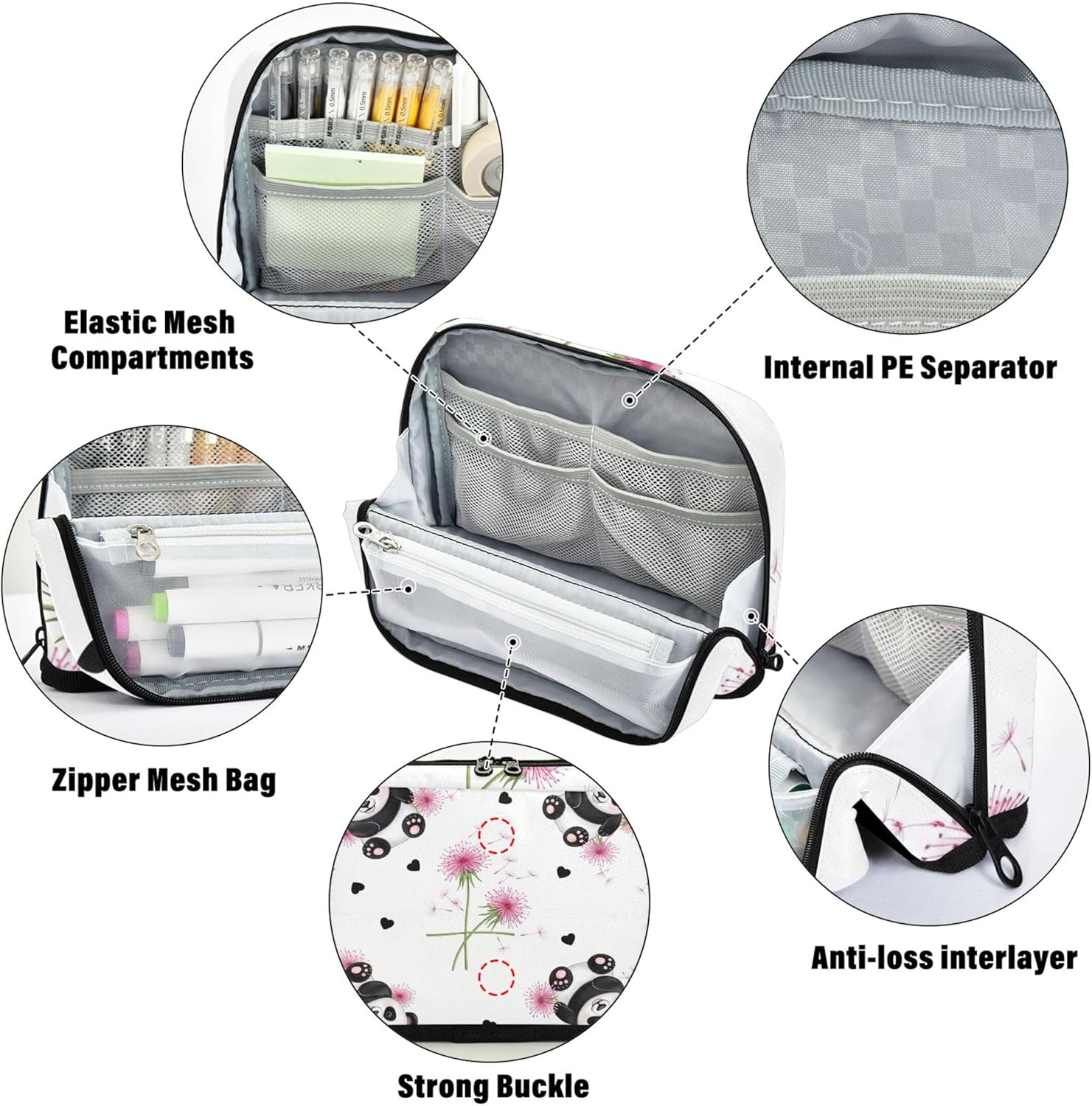 Rimane in posizione verticale per un facile accesso: l'astuccio kawaii per bambini si piega in una base stabile utilizzando pulsanti magnetici, trasformandosi in un portapenne verticale che mantiene i tuoi oggetti essenziali visibili e raggiungibili Tessuto protettivo e pratico: realizzato in nylon resistente, l'astuccio per ragazze è progettato per resistere ai danni, rendendolo ideale per viaggi, scuola o spostamenti quotidiani Soluzione di archiviazione efficiente: i sacchetti con cerniera sono dotati di una grande sezione centrale e tasche extra, che lo rendono facile da riporre e individuare piccoli articoli per la scuola o l'ufficio Multiuso: la custodia per il trucco con cerniera funziona come astuccio per penne, astuccio per il trucco, kit da viaggio o organizer per ufficio, ideale per scuola, lavoro, gite e uso quotidiano Regalo premuroso e utile: con motivi accattivanti e supporto dal design personalizzato, l'astuccio kawaii per borsa diventa un regalo pratico ma sincero per qualsiasi età o stile di vita