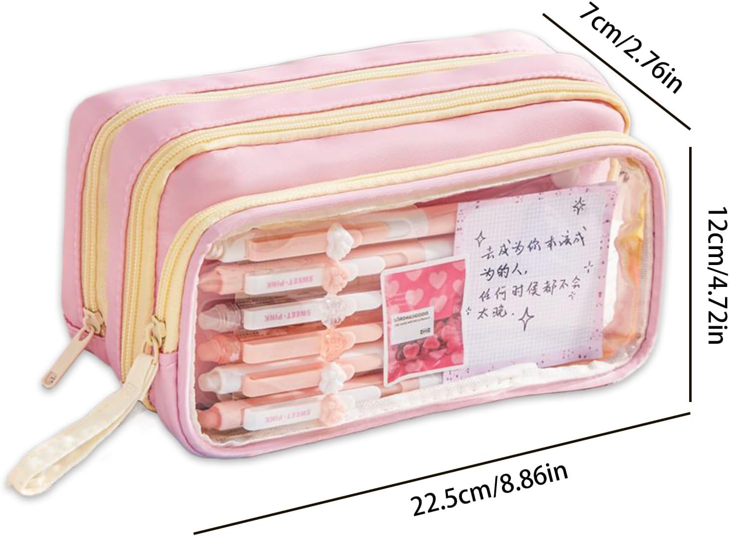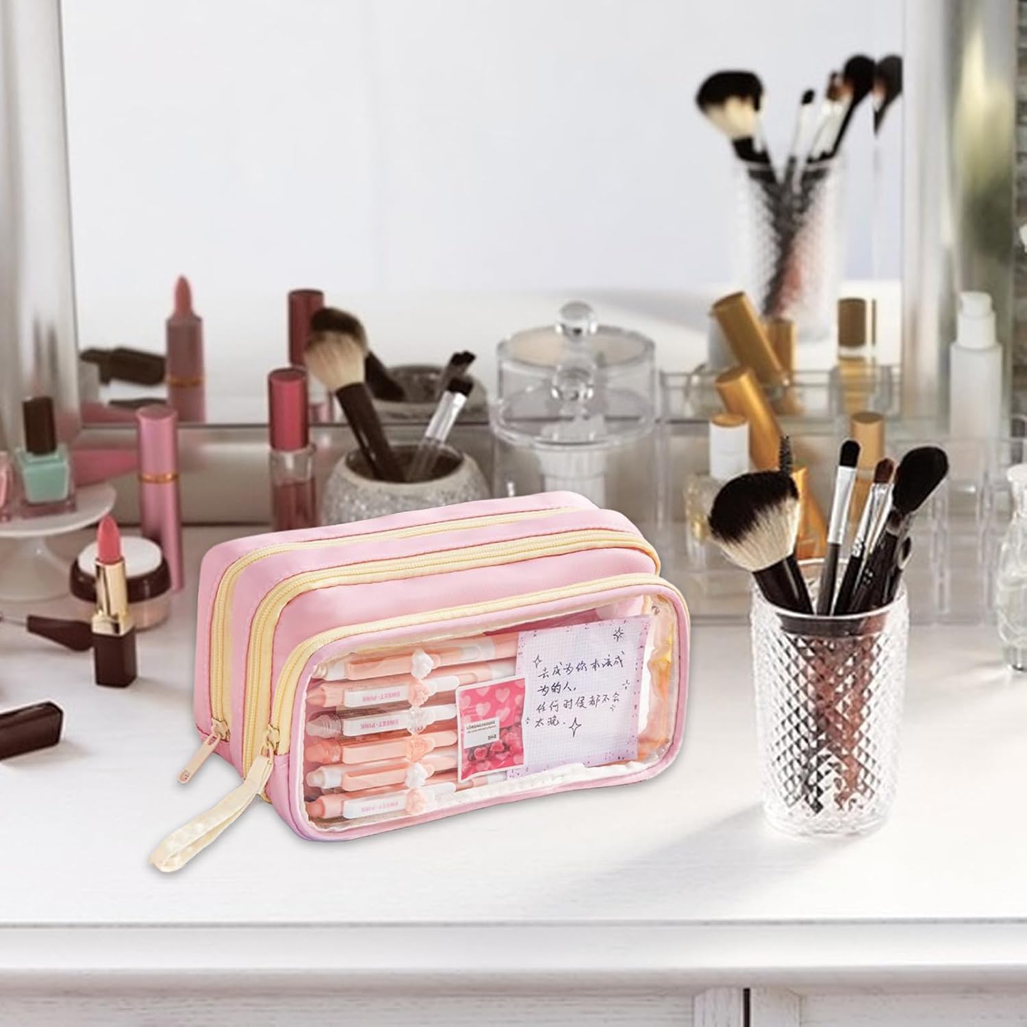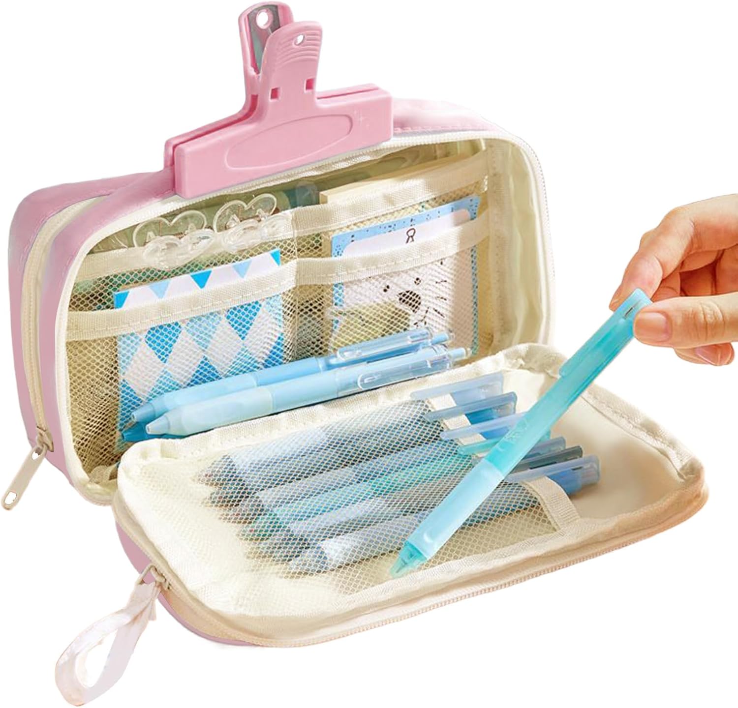 Sistema di classificazione della cancelleria: l'astuccio presenta un design trasparente a strati e un'organizzazione multi-scomparto, consentendo una visibilità ad accesso rapido per modernizzare la classificazione degli articoli di cancelleria per una migliore produttività Soluzione versatile: ideale per organizzare cosmetici, campioni di prodotti per la cura della pelle o gioielli, questo astuccio si adatta facilmente a scuola, studio o viaggi, garantendo praticità in ogni ambiente Portabilità migliorata: combinando un manico portatile e un attacco sul lato dello zaino, questo astuccio offre modalità di utilizzo flessibili per migliorare la comodità quotidiana, adattandosi alle diverse preferenze di trasporto senza soluzione di continuità Miglioramento dello stile creativo: unisce contrasti di colore audaci, dettagli accattivanti dei cartoni animati e un approccio versatile alla personalizzazione della tavolozza, per una rappresentazione autentica dello stile Comfort assicurato: progettato con una cerniera affidabile che garantisce una chiusura sicura, sistema accanto alla visibilità trasparente e un maggiore comfort tattile
