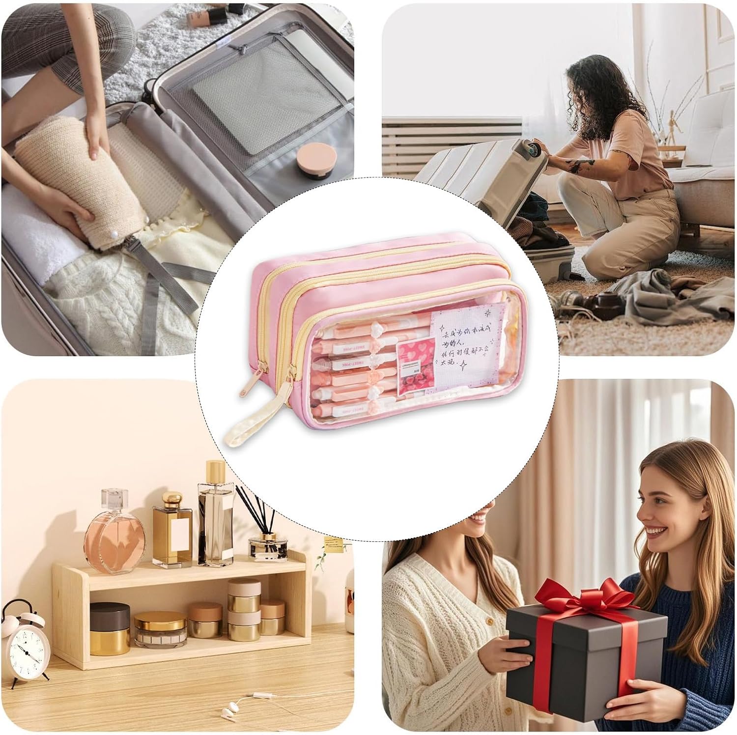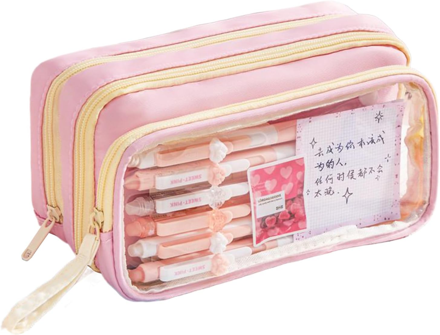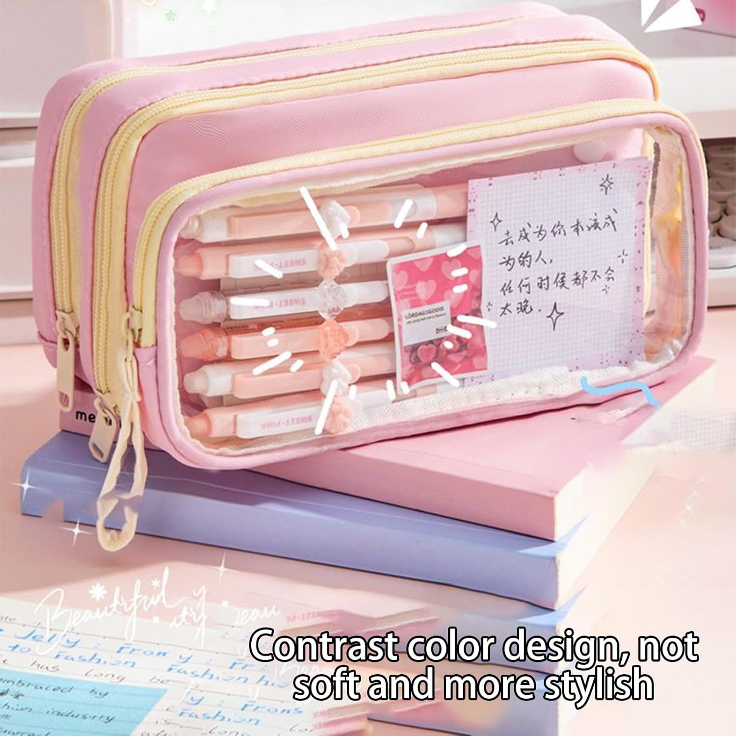 Sistema di classificazione della cancelleria: l'astuccio presenta un design trasparente a strati e un'organizzazione multi-scomparto, consentendo una visibilità ad accesso rapido per modernizzare la classificazione degli articoli di cancelleria per una migliore produttività Soluzione versatile: ideale per organizzare cosmetici, campioni di prodotti per la cura della pelle o gioielli, questo astuccio si adatta facilmente a scuola, studio o viaggi, garantendo praticità in ogni ambiente Portabilità migliorata: combinando un manico portatile e un attacco sul lato dello zaino, questo astuccio offre modalità di utilizzo flessibili per migliorare la comodità quotidiana, adattandosi alle diverse preferenze di trasporto senza soluzione di continuità Miglioramento dello stile creativo: unisce contrasti di colore audaci, dettagli accattivanti dei cartoni animati e un approccio versatile alla personalizzazione della tavolozza, per una rappresentazione autentica dello stile Comfort assicurato: progettato con una cerniera affidabile che garantisce una chiusura sicura, sistema accanto alla visibilità trasparente e un maggiore comfort tattile