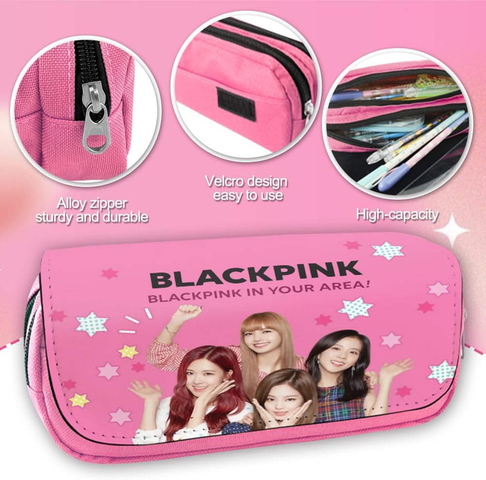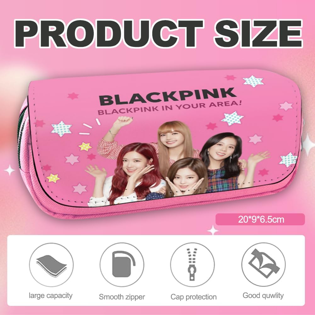 ★MATERIALE DI ALTA QUALITÀ: Questa borsa per matite per bambini è realizzata in pelle PU di alta qualità e materiale di tela, leggero e resistente, fornisce un'eccellente protezione per l'astuccio contro polvere, strappi, graffi e abrasioni, cerniera forte, facile da usare. ★ DESIGN A COMPARTIMENTO: è una borsa per matite con patta a doppio strato con 2 strati di astucci, che può organizzare e ordinare la cancelleria, adatta a temperamatite, piccoli quaderni, gomme e telefoni cellulari e altri piccoli oggetti. Questa adattabilità offre agli utenti una soluzione di archiviazione pratica e bella per soddisfare le esigenze. ★ DESIGN DI BELLO SGUARDO: bellissimo disegno, aspetto elegante, ispirato alle celebrità dei gruppi femminili, bellissimo disegno, regalo perfetto per i fan. Il design creativo dell'astuccio lo rende l'accessorio preferito da bambini, ragazzi e adulti. ★ Astuccio MULTIFUNZIONALE: questo astuccio non solo può essere utilizzato come borsa per la cancelleria, ma anche come borsa per artisti, borsa per il trucco, borsa per l'organizzazione, borsa per gli accessori da viaggio, borsa per gli attrezzi, organizer per la cancelleria, portamonete e così via. Perfetto per la vita quotidiana, i viaggi, lo shopping, gli appuntamenti o la vita quotidiana, il compleanno, il capodanno, il ringraziamento, qualsiasi occasione speciale per le persone, ecc. ★ REGALO IDEALE: L'astuccio portapenne è progettato per essere piccolo e leggero, può essere facilmente inserito nello zaino o nella borsa, un simpatico astuccio portapenne in tela e un organizzatore da tavolo, regalo ideale per la laurea, il compleanno, il ritorno a scuola e il Natale.