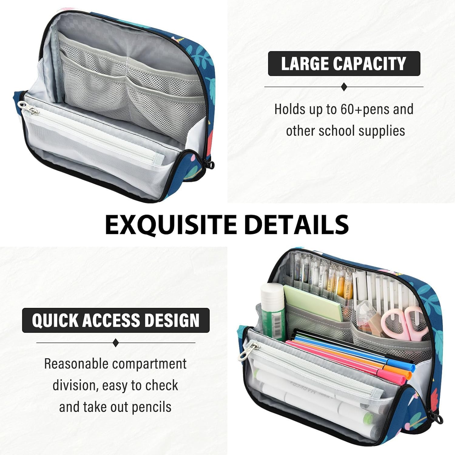 Sta in posizione verticale comodamente: l'astuccio ha bottoni magnetici che tengono saldamente la base piegata, creando un supporto stabile. L'astuccio consente di vedere e afferrare istantaneamente penne, matite o strumenti senza dover scavare in disordine, perfetto per scrivanie occupate o tavoli artigianali. Facile organizzazione: l'astuccio offre ampio spazio per riporre e organizzare i tuoi articoli scolastici, articoli per il trucco, accessori da cucito o gadget elettronici. Alta qualità: astucci realizzati in tessuto di poliestere lavabile, cuciti con cuciture solide, offrono una grande protezione contro polvere e graffi per il contenuto all'interno. Inodore e facile da pulire. Borsa multiuso essenziale: portamatite, portapenne, organizer per pennelli, trucchi o oggetti personali. Ideale per scuola, ufficio, viaggi, lezioni d'arte o gite di un giorno. Come regalo: l'astuccio organizer può anche essere regalato come regalo per amici. I genitori potrebbero regalarlo ai bambini come regalo di compleanno o regalo di Natale. Gli insegnanti potrebbero regalarlo agli studenti come regalo di laurea o premio.