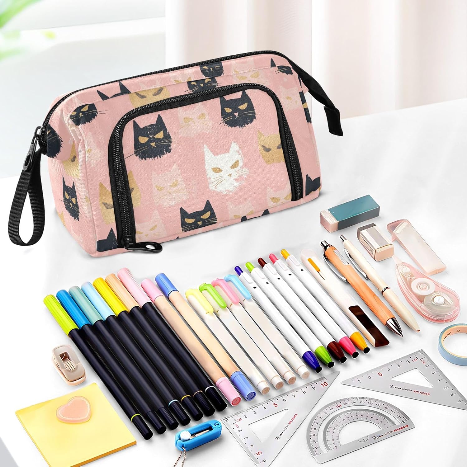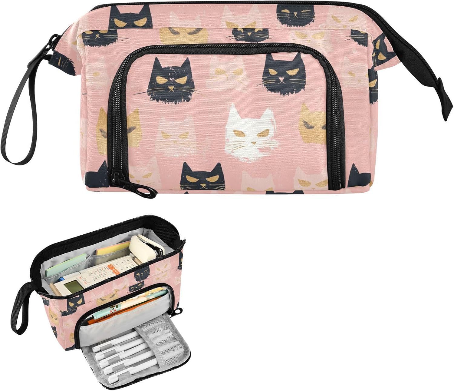 Materiale adeguato: questo robusto astuccio grande è realizzato in robusto tessuto di nylon, di lunga durata, pratico, resistente all'usura, resistente ai graffi, facile da lavare e pulire. Con cerniera in metallo liscio, può aprirsi e chiudersi facilmente. (Non adatto a bambini di età inferiore ai 3 anni!) Grande capacità: 24 x 9,5 x 15 cm (lunghezza x larghezza x altezza). L'astuccio presenta una tasca principale spaziosa di grande capacità, che può contenere 40-60 matite, regole o quaderni. Due tasche interne possono contenere piccoli oggetti scolastici come gomme, nastri, foglietti adesivi e altre necessità. La tasca laterale esterna è dritta alla tasca principale e si attacca a 5 scomparti per matite, fissando le penne usate di frequente e organizzando ordinatamente le matite. Design portatile e pratico: con funzionalità leggere e un'ampia fascia da tenere in mano, l'organizer può essere messo facilmente nello zaino o tenuto in mano senza sforzo. L'apertura superiore e laterale aggiunge più comodità nella tua vita. Puoi controllare o prendere la tua cancelleria molto chiaramente dall'alto e raccogliere le tue matite preferite dagli slot fissi laterali. Multifunzione: con una tasca frontale aggiuntiva e uno scomparto principale di grande capacità, il nostro prodotto non è solo un astuccio, ma una borsa, una borsa da viaggio, una borsa da trekking, una borsa per attrezzi, una borsa per cellulare, trucco, pittura, trucco, medicine, 3C, ecc. Materiale lavabile: l'intero astuccio è lavabile. il modo corretto di lavare è a mano; il lavaggio in lavatrice non è supportato. Non aggiungere candeggina durante la pulizia.