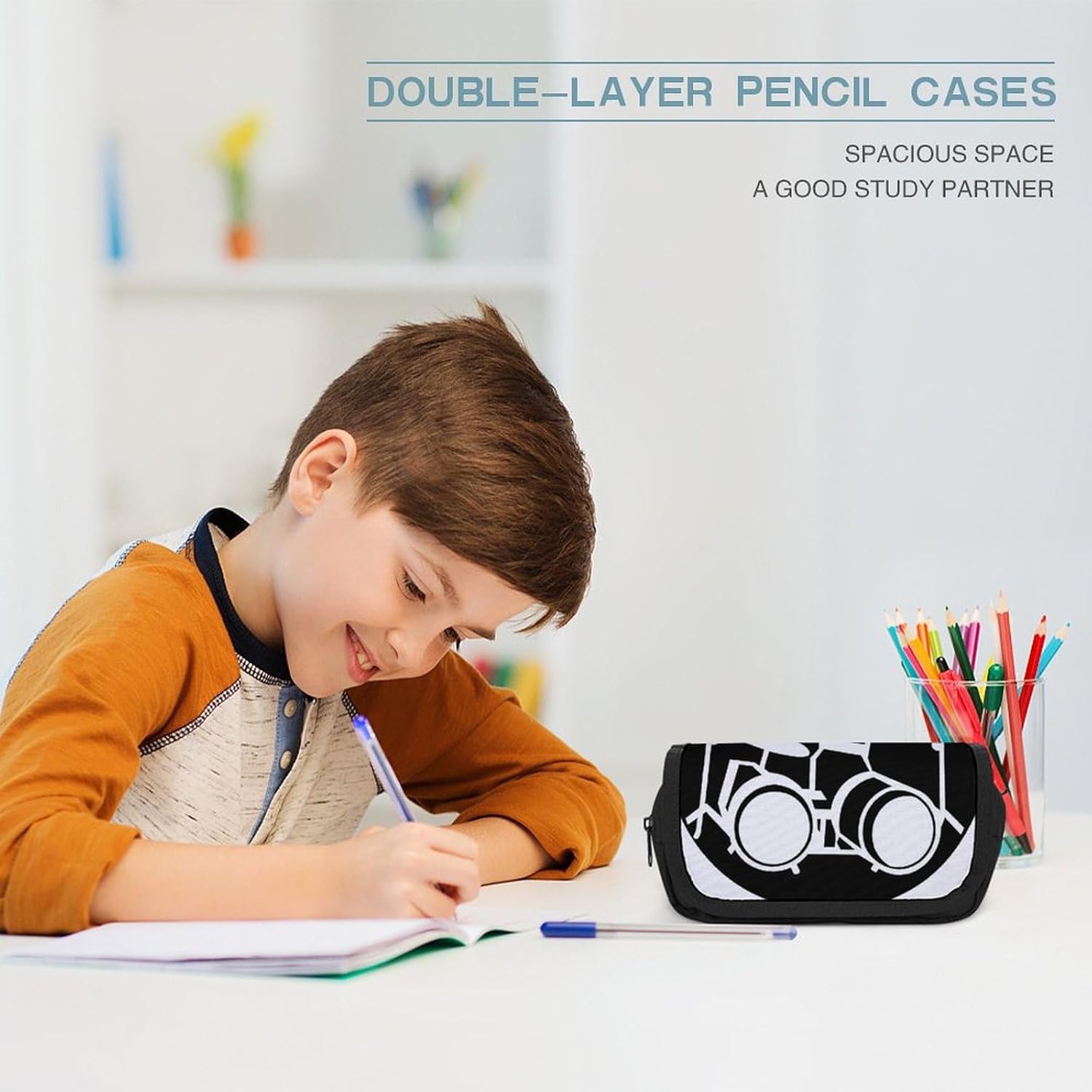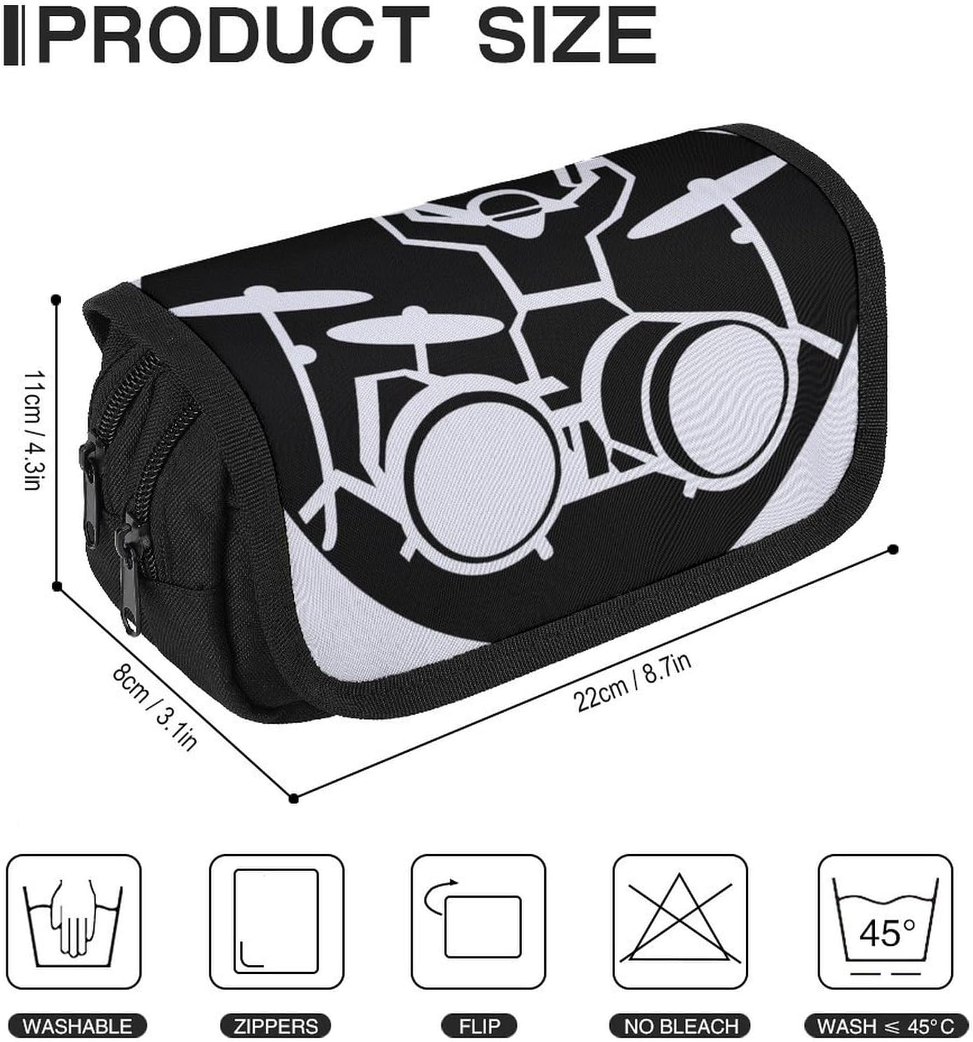 Alta qualità: l'astuccio per batterista è realizzato in poliestere, ben realizzato. Cerniere antigraffio e robuste per un facile utilizzo. È un materiale perfetto per realizzare astucci per penne. Cuciture eccellenti e materiali confortevoli per un tocco morbido. Grande capacità: l'astuccio per penne per batterista ha 2 scomparti, facili da classificare, dimensioni 22,1 x 7,9 x 10,9 cm. Grande capienza, lo scomparto principale può contenere fino a 50 penne e matite, la tasca esterna anteriore è perfetta per riporre righelli o altri piccoli oggetti. Design con fibbia magica: la custodia per matite Drummer adotta un design autoadesivo con fibbia magica, che una volta incollata insieme, è solida e non allentata, impedendo efficacemente agli oggetti di scivolare via. Protegge la pulizia e la sicurezza degli oggetti nell'astuccio. Multifunzionale: questa borsa per batteria è multifunzionale, non solo per riporre articoli di cancelleria, gomme, righelli, calcolatrici, nastro adesivo, ecc. Ma può anche essere utilizzata come custodia da viaggio, borsa per 3 C, borsa per attrezzi, borsa per il trucco o borsa per riporre oggetti. Adatta sia per ufficio, casa che per viaggi. Idea regalo: questo astuccio essenziale per batteristi è il regalo perfetto per colleghi, amici, familiari o manager di strumenti da ufficio durante Natale, Ringraziamento e Pasqua.