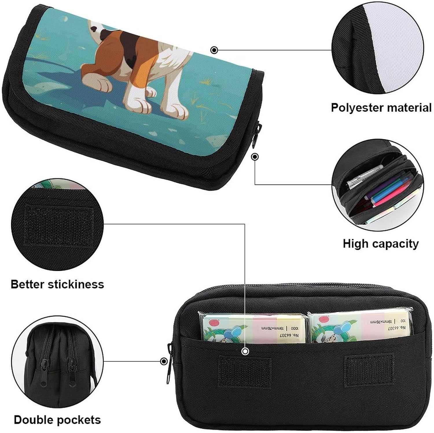Alta qualità: l'astuccio con cane Beagle è realizzato in poliestere, ben realizzato. Cerniere antigraffio e robuste per un facile utilizzo. È un materiale perfetto per realizzare astucci per penne. Cuciture eccellenti e materiali confortevoli per un tocco morbido. Grande capacità: il portapenne con cane Beagle Cartoon ha 2 scomparti, che sono facili da classificare, dimensioni 22,1 x 7,9 x 10,9 cm, grande spazio di archiviazione, scomparto principale può contenere fino a 50 penne e matite, la tasca esterna anteriore è perfetta per posizionare righelli o altri piccoli oggetti. Design con fibbia magica: la custodia per matite con cane Beagle Cartoon adotta un design autoadesivo con fibbia magica, che una volta incollata insieme, è solida e non allentata, impedendo efficacemente agli oggetti di scivolare via. Protegge la pulizia e la sicurezza degli oggetti nell'astuccio. Multifunzionale: questa borsa a forma di cane Beagle è una borsa multifunzionale, non solo può contenere articoli di cancelleria, gomme, righelli, calcolatrici, nastro adesivo, ecc. Ma può anche essere utilizzata come custodia da viaggio, borsa per 3 C, borsa per attrezzi, borsa per il trucco o borsa per riporre oggetti. Adatta sia per ufficio, casa che per viaggi. Idea regalo: questo astuccio essenziale con cane Beagle Cartoon è il regalo perfetto per colleghi, amici, familiari o manager di strumenti da ufficio durante Natale, Ringraziamento e Pasqua.