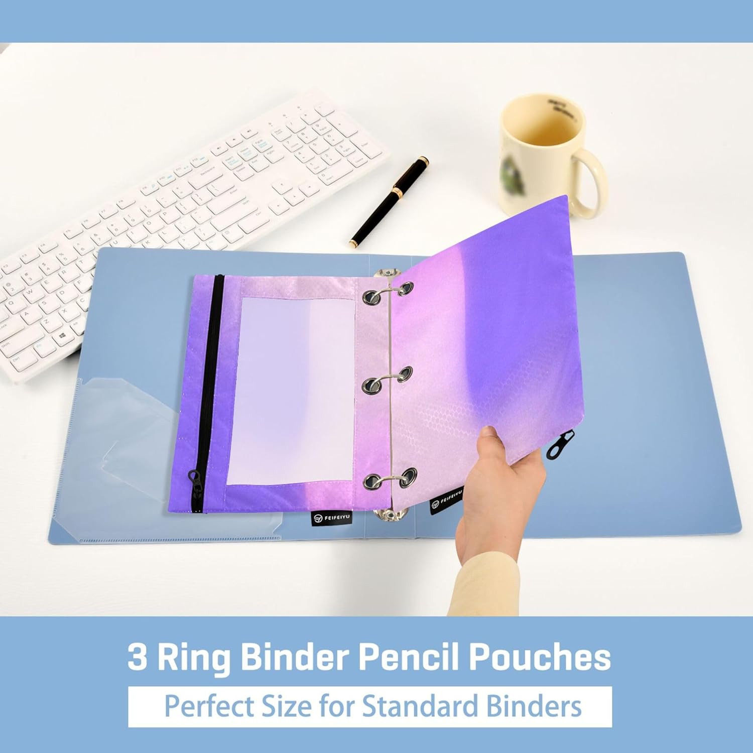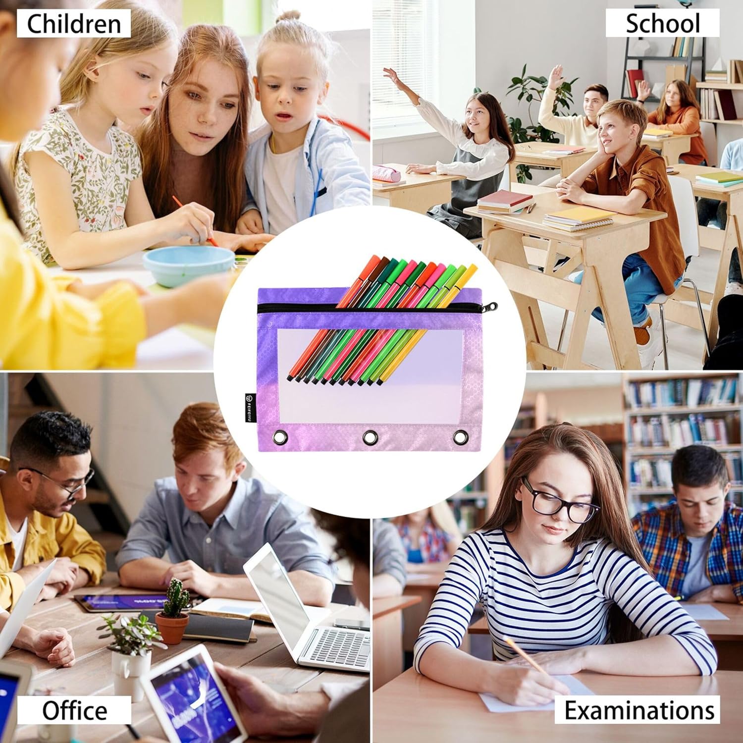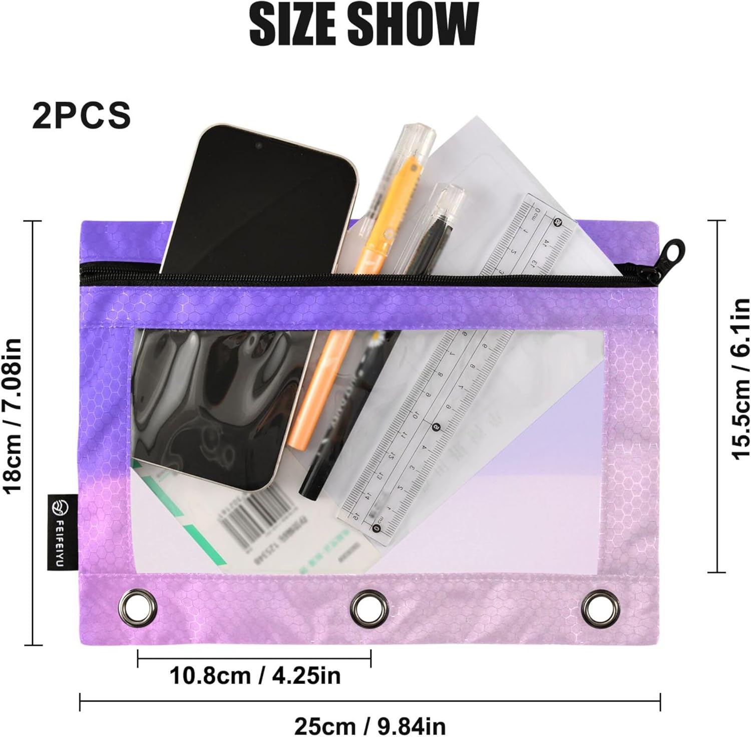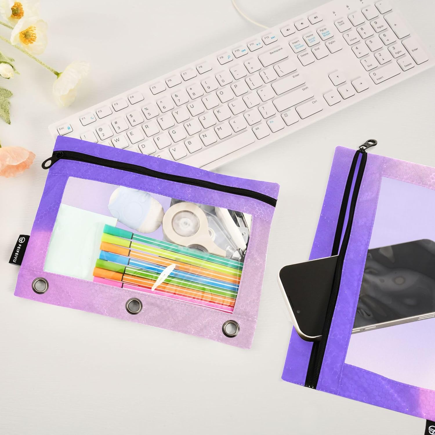 Tessuto di alta qualità: realizzato in 100% poliestere con una trama lucida a griglia da calcio, le maniche trasparenti a 3 anelli personalizzate offrono durata e resistenza all'acqua, proteggendo i tuoi oggetti essenziali. Spazio spazioso: dimensioni di 25 x 18 x 0,5 cm e una dimensione utilizzabile di 15,5 x 25 cm, la tasca per raccoglitore a 3 anelli offre ampio spazio per penne, matite e pennarelli. Design pronto per il raccoglitore: con una distanza tra i fori di 10,8 cm, gli inserti per raccoglitori si integrano perfettamente con i raccoglitori standard a 3 anelli, rendendolo una scelta versatile per l'organizzazione. Facile visualizzazione: la sezione frontale trasparente dell'astuccio per raccoglitori consente una facile visibilità e accesso ai tuoi oggetti, rendendolo un comodo strumento per organizzazione ed efficienza. Stampe affascinanti: l'astuccio floreale con cerniera a 3 anelli presenta un delizioso mix di simpatici animali, fiori colorati e disegni festivi, aggiungendo un tocco giocoso alle tue esigenze organizzative.