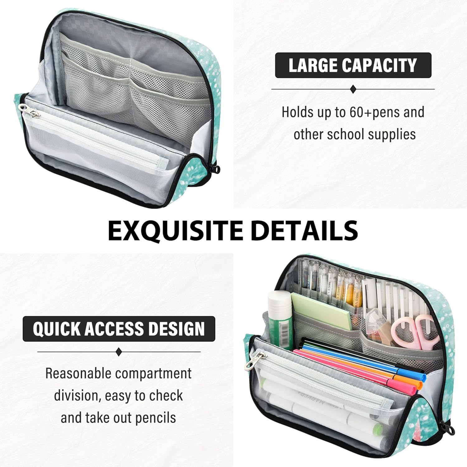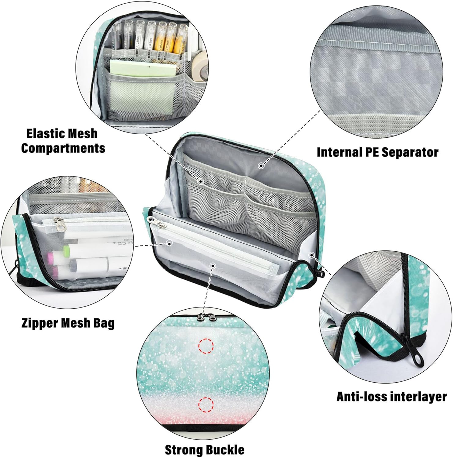 Design intelligente della struttura: l'astuccio con cerniera si trasforma in un supporto con chiusura magnetica quando piegato, offrendo una visione chiara e un facile accesso alle tue forniture Qualità che puoi sentire: il nylon resistente conferisce all'astuccio una struttura leggera ma resistente, mantenendo il contenuto al sicuro rendendo la pulizia semplice e senza problemi Design versatile con scomparti: l'astuccio ti aiuta a rimanere organizzato con un interno spazioso con aree distinte per tutti i tuoi articoli di cancelleria, strumenti o cosmetici Non solo per cancelleria: le borse organizer da viaggio sono pronte per contenere materiale scolastico, oggetti essenziali da viaggio o prodotti di bellezza, adattandosi perfettamente a ogni stile di vita Progetta a modo tuo: materiale scolastico per ragazze supporta modifiche personalizzate come testo personalizzato o opere d'arte caricate, rendendolo un'idea regalo eccezionale per bambini e adulti creativi