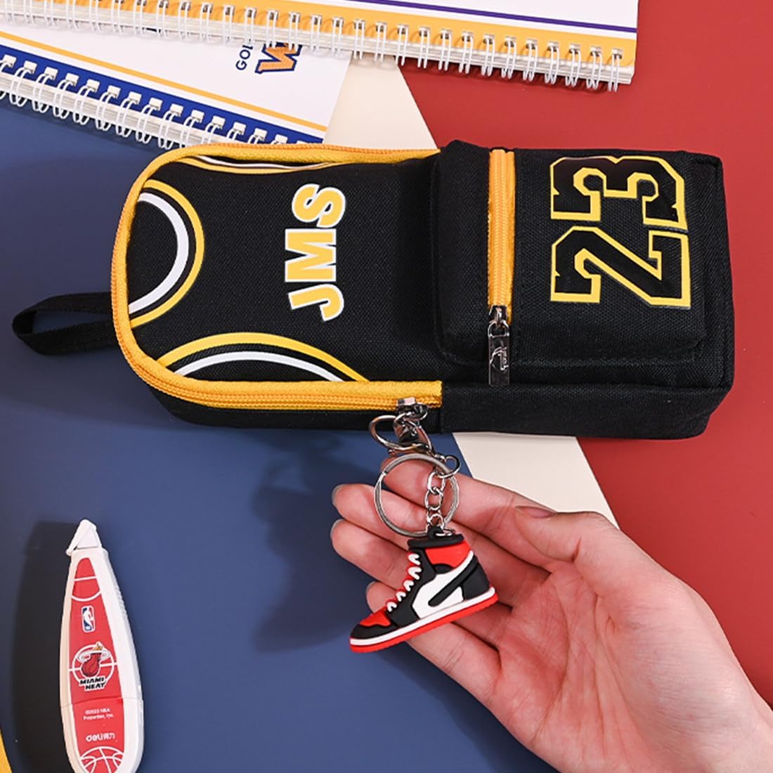 Materiale di qualità: realizzato in tela Oxford impermeabile e resistente con cerniera in metallo, antimacchia e lavabile, facile da pulire. Regalo perfetto: i fan che possono essere utilizzati per raccogliere e adatti per la memorizzazione di oggetti, il volume non è grande, fuori o in viaggio può essere facilmente trasportato, pratico e utile. Design a doppio strato: questo astuccio ha un design speciale che consente di riporre diversi oggetti in sezioni separate. È la perfetta combinazione di moda e funzionalità, un must have per l'uso quotidiano ovunque. Multifunzionale e multiuso: l'astuccio con grande capacità può essere utilizzato non solo come borsa per cancelleria, ma anche come borsa per il trucco, borsa da viaggio, ecc. Regalo ideale: questo astuccio per matite con bella custodia è un regalo perfetto per tutti gli appassionati di basket, ragazze adolescenti, bambini, ragazzi, bambini, uomini e donne.