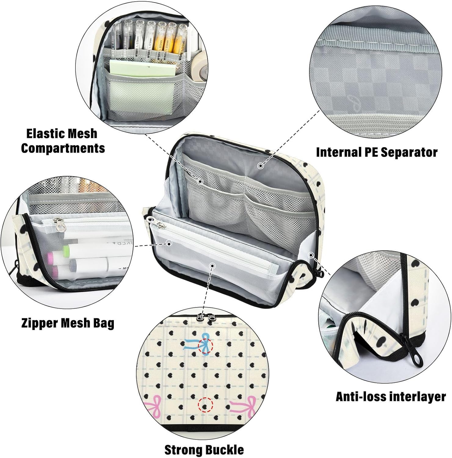 Design unico: quando viene aperto e piegato all'indietro, la chiusura magnetica a scatto lo terrà piegato, formando una base robusta. Diventa un portapenne che può stare sul tavolo, permettendoti di vedere facilmente la posizione esatta degli oggetti all'interno, aiutandoti a trovare rapidamente ciò che desideri. Organizzazione spaziosa e intelligente: il portamatite presenta un ampio scomparto principale, una tasca in rete con cerniera e una tasca aperta. Separa facilmente matite, gomme, temperamatite, note o piccoli gadget per un controllo totale del disordine. Tessuto in nylon rinforzato: astuccio realizzato in resistente nylon 100% poliestere. Resiste a graffi, ammaccature e usura quotidiana, assicurando che il tuo astuccio rimanga bello più a lungo. Facile da pulire. Borsa multiuso essenziale: astuccio portamatite, portapenne, organizer per pennelli, trucchi o oggetti personali. Ideale per scuola, ufficio, viaggi, lezioni d'arte o gite di un giorno. Questo piccolo portapenne è un bel regalo per adulti, scrittori e artisti per laurea, regalo di compleanno, ritorno a scuola o forniture di viaggio.