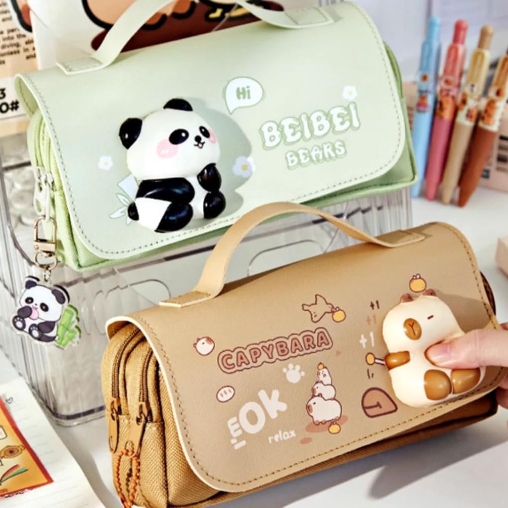 Set di cancelleria a forma di capibara: questo adorabile set include un astuccio capibara, un giocattolo a pressione con penna a sfera e molto altro, rendendolo un set regalo di cancelleria per bambini Per bambine e bambini: l'astuccio capibara e il set di cancelleria con il giocattolo a pressione con penna a sfera sono adatti sia a bambine che a bambini, portando gioia a tutti Un grazioso capibara e un panda: l'astuccio capibara presenta un grazioso e adorabile capibara/panda, aggiungendo divertimento e fascino alla tua collezione di cancelleria Strumento di decompressione: il giocattolo a pressione capibara incluso nel set di cancelleria può aiutare ad alleviare lo stress e fornire una divertente distrazione durante il lavoro o lo studio Scelta regalo: che sia per il ritorno a scuola o come regalo speciale, questo set di cancelleria capibara è un'idea regalo e deliziosa per gli amanti dei capibara di tutte le età
