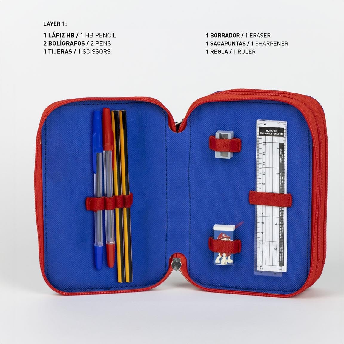 Astuccio 3 scomparti della Paw Patrol - Colore blu - Prodotto originale progettato in Spagna Benvenuti nel mondo di Cerda. Abbiamo trasformato i sogni dei bambini (e non così piccoli) da oltre 50 anni in abbigliamento, calzature, accessori, cancelleria e molto altro ancora. Scopri tutte le nostre licenze e goditi la mano dei tuoi personaggi preferiti! Questa volta vi presentiamo la nostra collezione di astucci, creata appositamente per accompagnare i bambini durante la loro fase a scuola o all'asilo. È progettato in Spagna, utilizzando materiali di alta qualità per offrire una maggiore durata e resistenza a ciascuno dei disegni, adattandosi alle esigenze del tuo bambino. Queste custodie a triplo scomparto fanno parte della licenza di Paw Patrol ed è un omaggio ai cuccioli più adorabili e giocosi. Il suo design si distingue per l'originalità delle sue finiture. Specifiche: - Astuccio con 3 scomparti, tutti con chiusura a zip. - Realizzato in 100% poliestere. - Design stampato con i cuccioli Chase e Marshall.