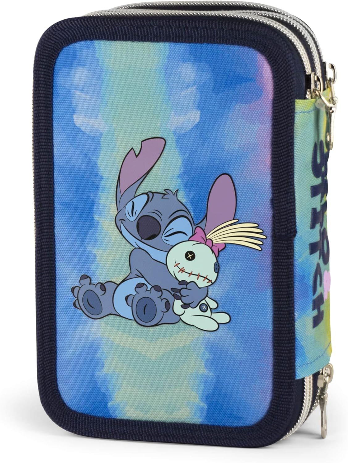 ASTUCCIO SCUOLA Completo di 45 Pezzi - STITCH DIMENSIONI APPROX 20 x 13 x 8 3 TASCHE CON CERNIERA LAMPO 1 penna cancellabile colore blu -1 penna a sfera colore rosso -18 pennarelli GIOTTO -18 pastelli a colori FILA -1 matite grafite -1 colla stick -1 gomma -1 temperino -1 righello trasparente -1 goniometro trasparente -1 forbice in metallo con maniglia in plastica PRODOTTO NUOVO CON CARTELLINO ED ORIGINALE