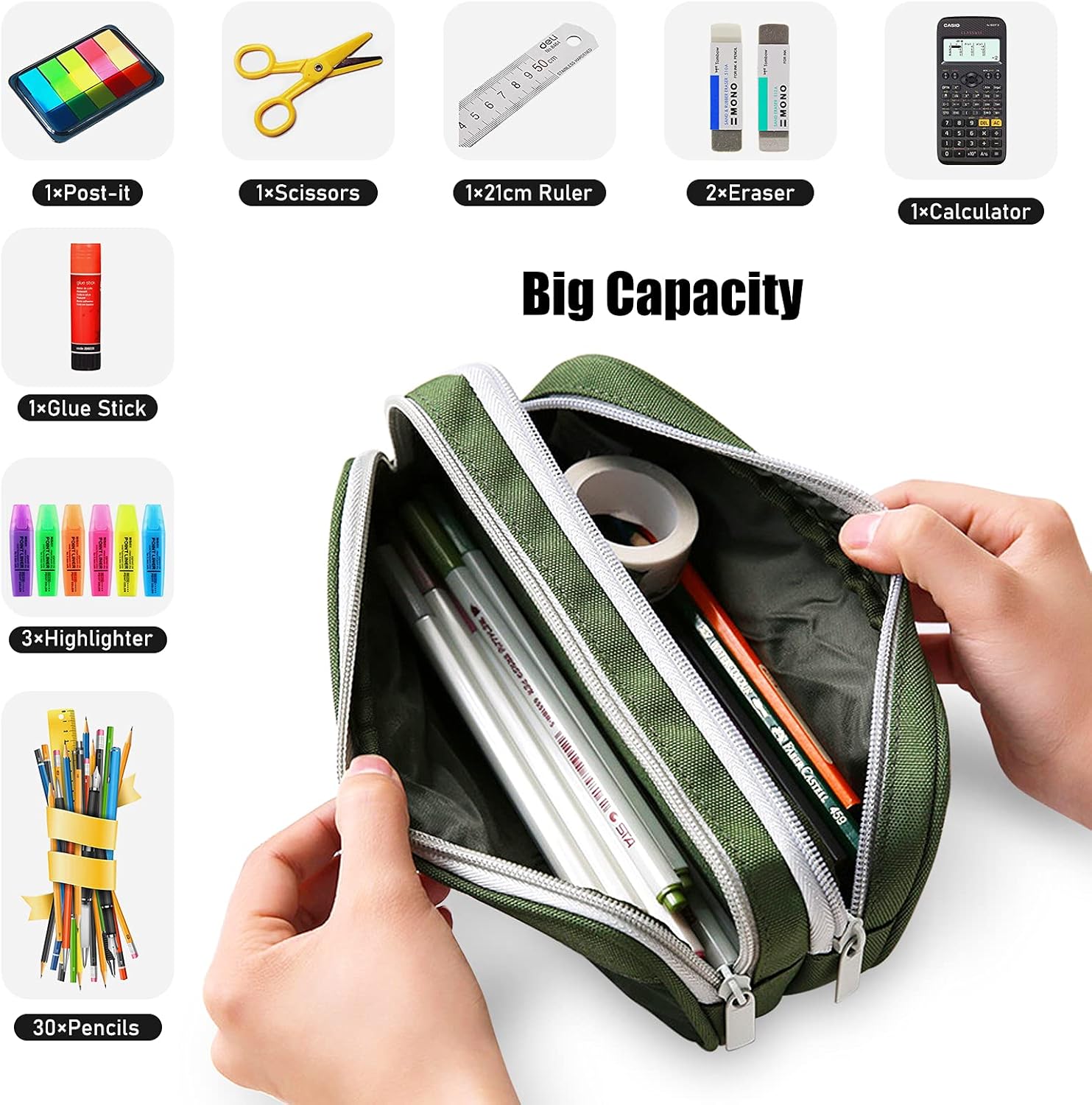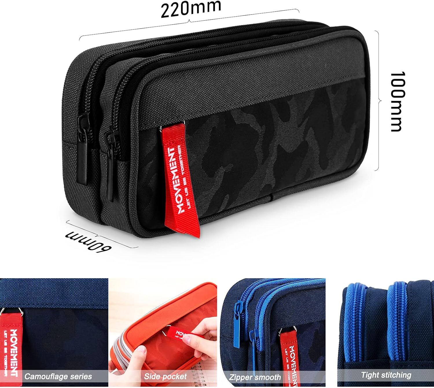 Grandi dimensioni con 3 tasche: dimensioni: 22,1 x 2,4 x 3,9 (lunghezza x larghezza x altezza). È pratico stazionario scolastico con tre grandi scomparti con cerniera che si adatta facilmente a una calcolatrice scientifica, righello da 21 cm, stick per colla, set di geometrie e penne, matite ed evidenziatori. Astuccio personalizzato: gli scomparti laterali sono progettati con fantastiche stampe mimetiche per dare all'astuccio un aspetto 3D. Materiale superbo: materiale Oxford + doppia fodera. Il materiale in tessuto Oxford offre una sensazione incredibile al tatto, portatile, estremamente resistente, antigraffio, resistente allo sporco, impermeabile. Interno doppio rivestimento in PU impermeabile, non devi preoccuparti che l'inchiostro fuoriesca. Cerniera più forte: con cerniera di alta qualità, molto strutturata, liscia e indossabile. Regalo ideale per il primo giorno di scuola del tuo bambino: ottimo acquisto per studenti di scuola secondaria, liceo e elementare. Grandi astucci di grandi dimensioni soprattutto per le scuole superiori. 3 scomparti con cerniera per raggruppare elementi essenziali di classe.