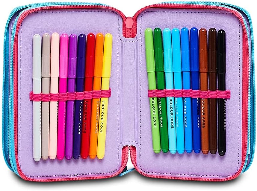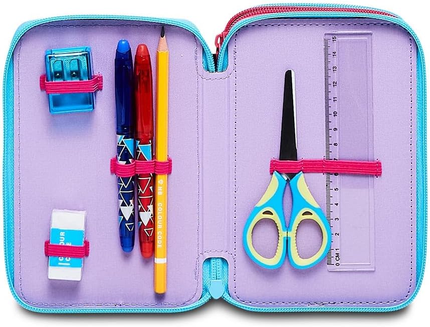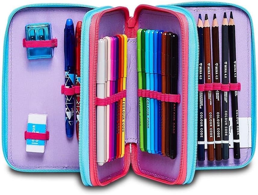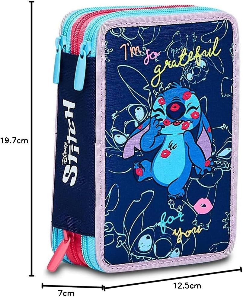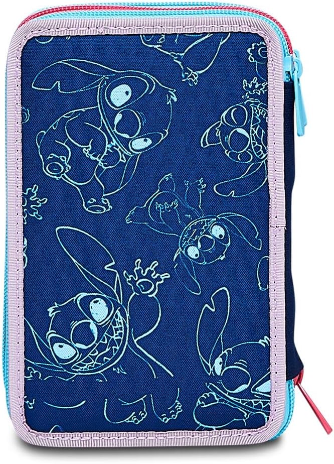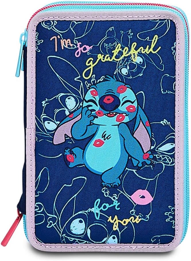 Astuccio Scuola Elementare 3 Scomparti - LILO & STITCH MY ALIEN PAL - DISNEY, Blu - Contenuto 43 pz - Completo di Matite, Pennarelli etc.- Portapenne Scuola Bambina Elementari