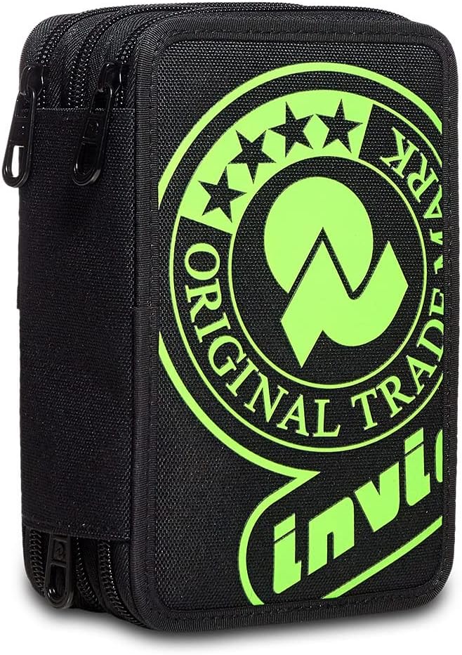 Astuccio rettangolare con tre scomparti Corpo idrorepellente in materiale riciclato Fodera interna Dimensioni: 11 x 23 x 7 cm