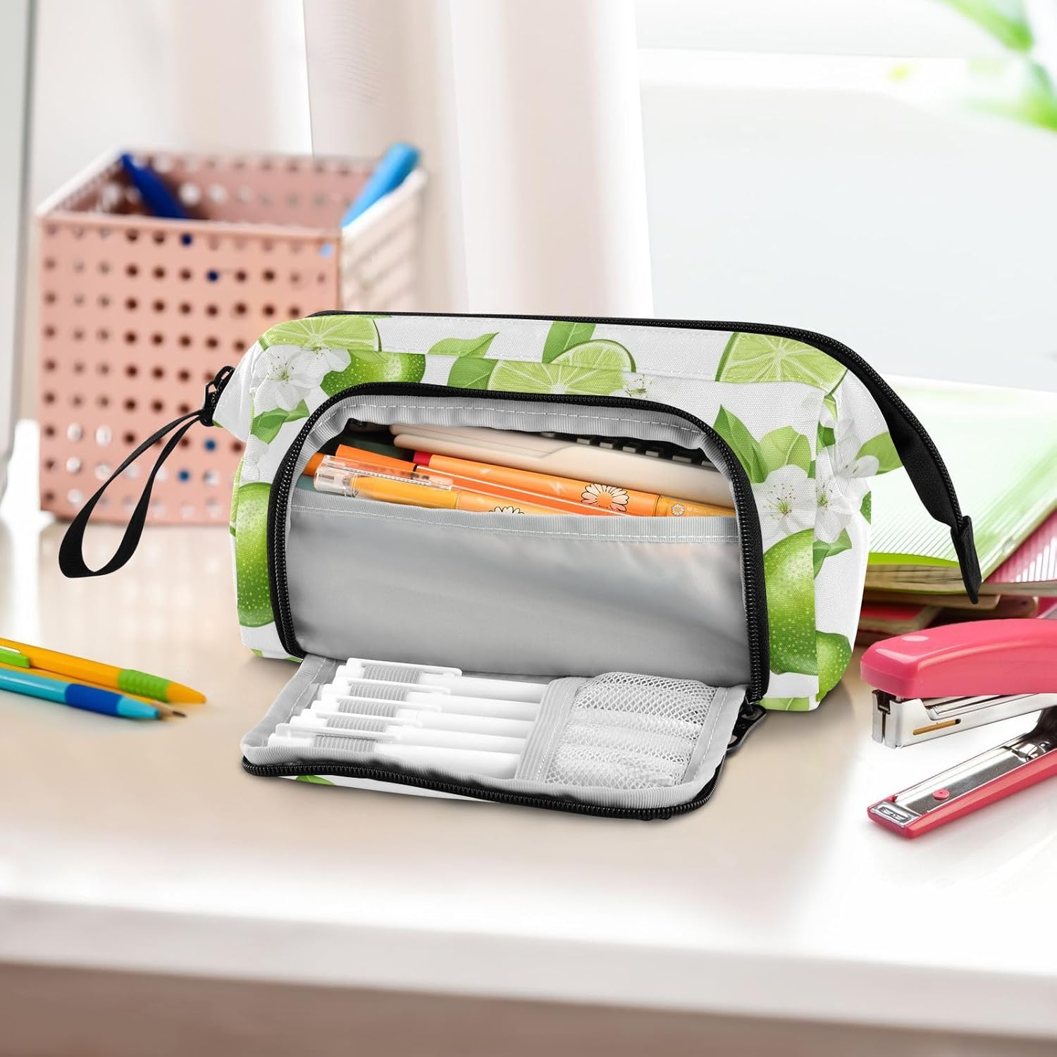 Materiale di alta qualità: realizzato in robusto tessuto di nylon e robusta cerniera in metallo, la custodia per penne è di qualità, in grado di resistere all'uso quotidiano, resistente all'usura, ai graffi e facile da pulire. (Non adatto a bambini di età inferiore ai 3 anni!) Grande capacità: misura 24 x 9,5 x 15 cm. L'astuccio può facilmente contenere 40-60 penne o matite nel suo ampio scomparto, fornendo abbastanza spazio per i tuoi oggetti essenziali di cancelleria. Due tasche interne sono spazio personalizzato per le tue piccole necessità quotidiane o materiale scolastico, come carte, contanti, chiavi, gomme, nastri, note adesive per trovarli facilmente e rapidamente. Design portatile e conveniente: con peso leggero, corpo piccolo e piegatura manuale, il nostro astuccio scolastico è facile da trasportare in borsa o tenere a portata di mano. L'apertura superiore e l'apertura laterale offrono scelte per voi per prendere o mettere le vostre necessità in esso. Puoi vedere chiaramente il tuo articolo dall'alto e trovare le tue penne, matite, pennarelli e pennelli usati di frequente dal lato. Multi funzioni: il nostro prodotto non è per la scuola e l'ufficio, ma anche per cosmetici e altre piccole necessità. L'astuccio può essere utilizzato come astuccio per pennelli per gli amanti della pittura, borsa per il trucco per donne, borsa per medicine per la famiglia, borsa 3C per prodotti elettronici, borsa da viaggio per te stesso. Istruzioni di lavaggio: lavare a mano, non lavare in lavatrice. Si prega di non aggiungere candeggina per il lavaggio.