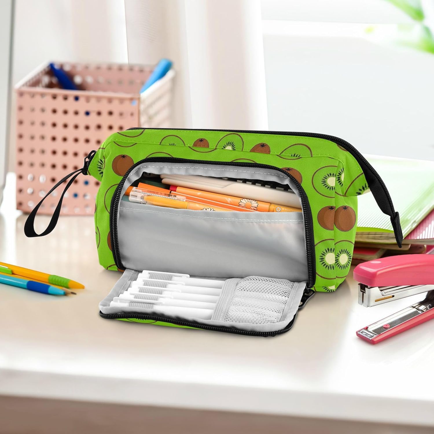 Materiale di lunga durata: realizzato in tessuto di nylon resistente, cerniera forte e resistente. Più robusto, leggero, resistente ai graffi, facile da pulire. (Non adatto a bambini di età inferiore ai 3 anni!) Grande capacità: 24 x 9,5 x 15 cm. Astuccio per matite dotato di grande capacità. Il grande scomparto centrale consente di inserire almeno 40-60 penne e può ospitare altri oggetti di cancelleria come penne, appunti, forbici, nastro, gomme, righelli, temperamatite, ecc. Due tasche interne sono adatte per le tue piccole necessità che facili da perdere, come carte, chiavi, contanti, ecc. Design portatile e pratico: con una caratteristica leggera e un'ampia fascia da tenere in mano, il portamatite può essere messo facilmente nello zaino o tenuto in mano senza sforzo. L'apertura superiore e laterale aggiunge più comodità nella tua vita. Puoi controllare o prendere la tua cancelleria molto chiaramente dall'alto e raccogliere le tue matite preferite dagli slot fissi laterali. Multi funzioni: il nostro prodotto non è per la scuola e l'ufficio, ma anche per cosmetici e altre piccole necessità. I sacchetti per matite possono essere utilizzati come astuccio per pennelli per gli amanti della pittura, borsa per il trucco per donne, borsa per medicine per la famiglia, borsa 3C per prodotti elettronici, borsa da viaggio per te stesso. Facile da pulire: lavare a mano; il lavaggio in lavatrice non è accettabile. Non aggiungere candeggina per il lavaggio.
