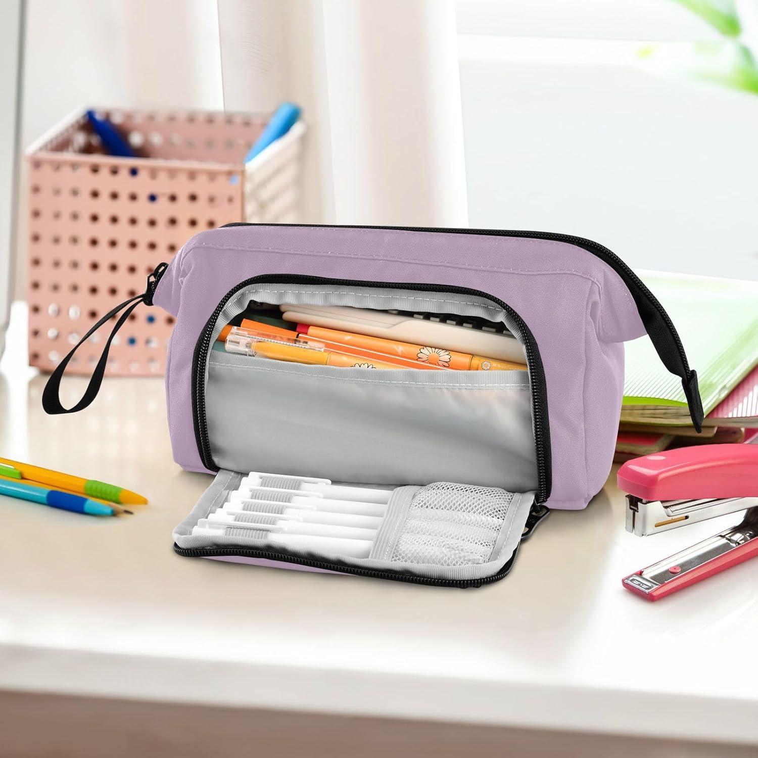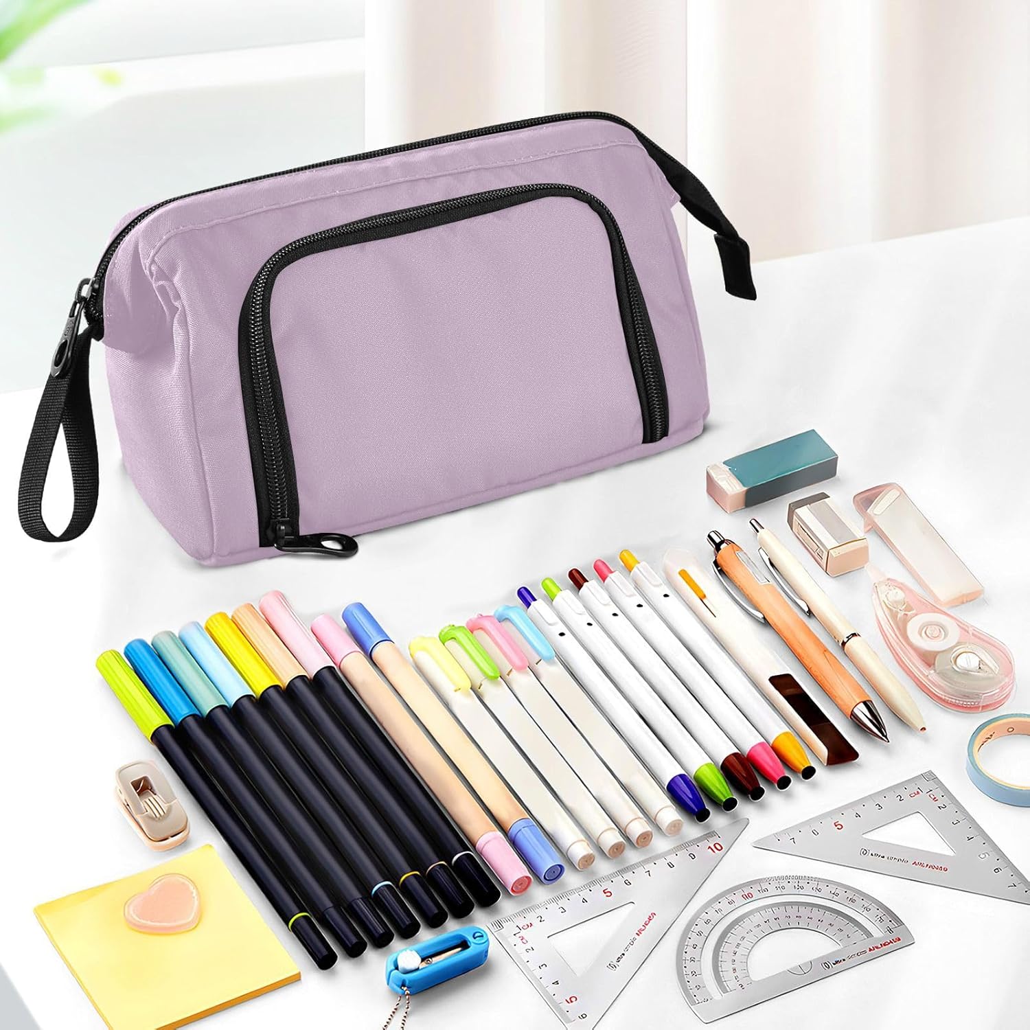 Materiale di lunga durata: realizzato in tessuto di nylon resistente, cerniera forte e resistente. Più robusto, leggero, resistente ai graffi, facile da pulire. (Non adatto a bambini di età inferiore ai 3 anni!) Grande capacità: misura 24 x 9,5 x 15 cm. L'astuccio può facilmente contenere 40-60 penne o matite nel suo ampio scomparto, fornendo abbastanza spazio per i tuoi oggetti essenziali di cancelleria. Due tasche interne sono spazio per le piccole necessità quotidiane o materiale scolastico, come carte, contanti, chiavi, gomme, nastri, foglietti adesivi per trovarli facilmente e rapidamente. Design portatile e conveniente: con peso leggero, corpo piccolo e piegatura manuale, il nostro astuccio organizer è facile da trasportare in borsa o tenere a portata di mano. L'apertura superiore e l'apertura laterale offrono scelte per voi per prendere o mettere le vostre necessità in esso. Puoi vedere chiaramente il tuo articolo dall'alto e trovare le tue penne, matite, pennarelli e pennelli usati di frequente dal lato. Uso multifunzionale: questo astuccio ha una grande capacità ma leggero da trasportare, adatto per studenti dell'asilo, elementare, scuola media, liceo, università per organizzare le loro forniture scolastiche. Inoltre, può anche essere applicato a vari scenari, come cosmetici, ufficio, viaggi, palestra, picnic, escursioni, campeggio, pittura e altre attività all'aperto. Istruzioni di lavaggio: lavare a mano, non lavare in lavatrice. Si prega di non aggiungere candeggina per il lavaggio.
