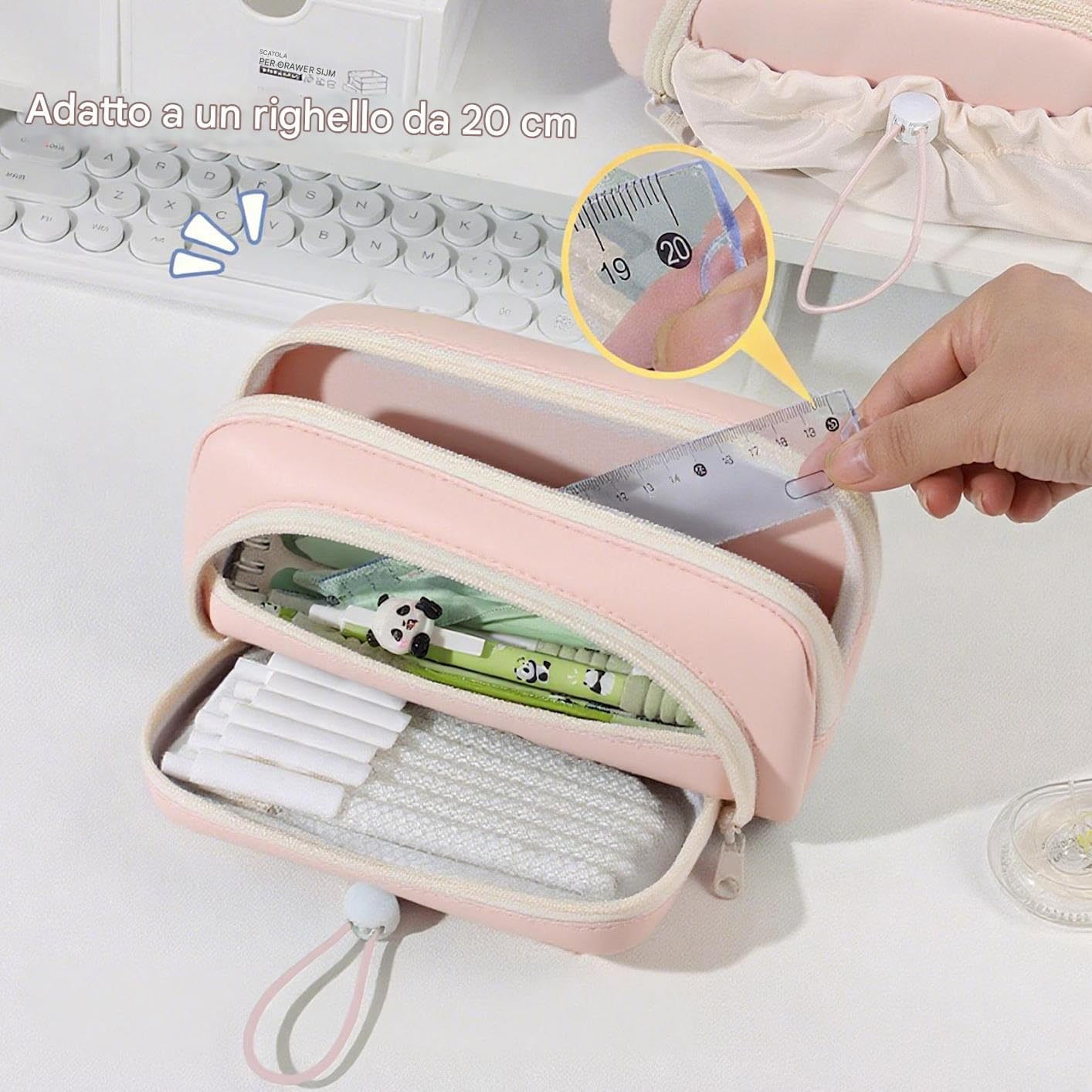 Soluzione Intelligente: Struttura compartimentata multilivello assicura elevata capacità contenitiva per articoli da scrittura, ospitando fino a 100 penne eliminando il disordine e assicurando praticità immediata in ogni contesto di utilizzo reale Design Pratico: La chiusura scorrevole e i materiali leggeri assicurano apertura/chiusura semplice e portabilità, ideale per riporre matite colorate, evidenziatori e piccoli strumenti creativi in aule, uffici o laboratori Protezione Affidabile:Design innovativo con chiusura a cordino offre apertura/chiusura senza sforzo, proprietà antismarrimento e antiscivolo potenziate per organizzare articoli con totale tranquillità Colori Vivaci e Stile: Con tonalità brillanti, questa trousse portamatite aggiunge vitalità alla tua routine quotidiana grazie a un design moderno ed elegante che si adatta perfettamente a ogni contesto, combinando funzionalità e fascino visivo con raffinatezza. Impermeabilità Efficace: Materiali di alta qualità garantiscono lunga durata e protezione da d'acqua per prestazioni affidabili in qualsiasi condizione, mantenendo la qualità nel naturalmente